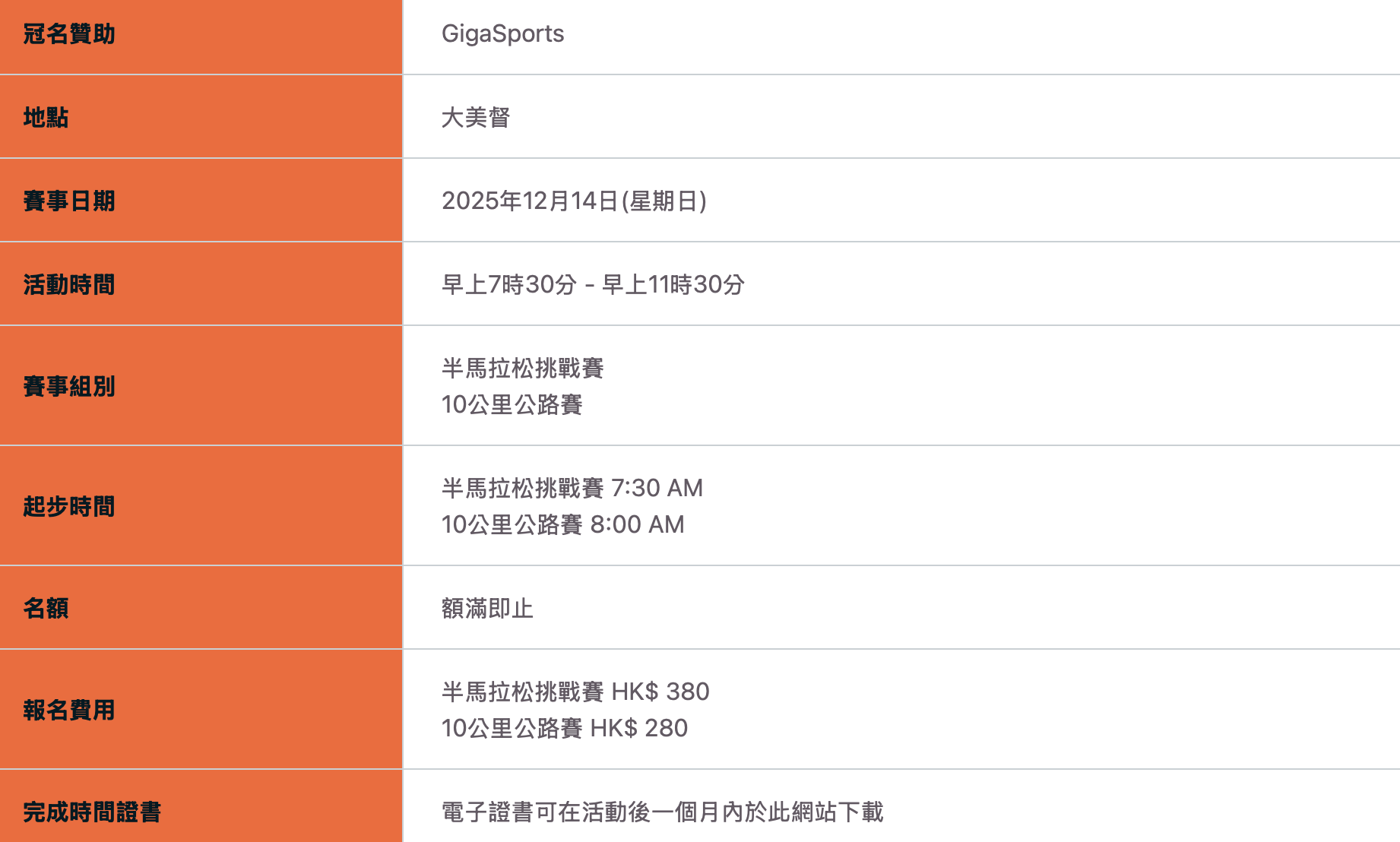 豐富禮品 (於賽事當天完賽後派發)賽事官網:https://shorturl.at/1AXJR