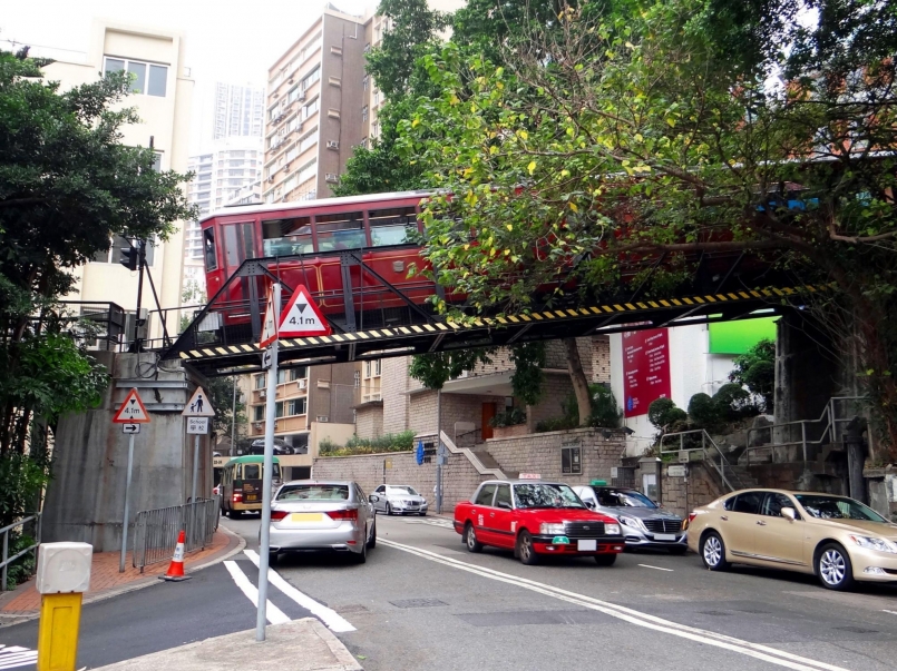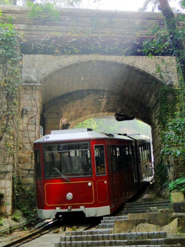 小心橫過對面馬路,繼續沿路軌旁邊的樓梯步至麥當勞道,從天橋下望,纜車路軌旁邊放置了一列昔日的綠色舊纜車,在這裡等待著第二列纜車經過,剛好能讓兩代纜車來個新舊對比。再次橫過馬路,便會來到麥當勞道車站,這段樓梯沿途會再次看到煤氣街燈,但目光卻會被前面馬己仙峽道的橋樑吸引下去,這條石砌的橋樑,充滿著昔日英式建築的味道,其圓拱形的底部,跟大潭水塘那幾條橋樑古蹟十分近似,每當纜車穿越橋底時,更會有暫時置身於外地的錯覺,在這裡你或許也會跟筆者一樣,等待著纜車通過的一刻呢!