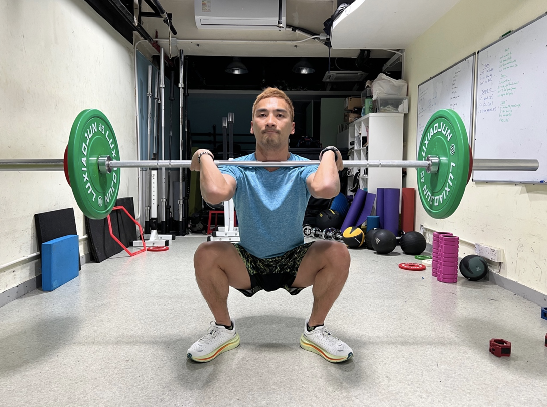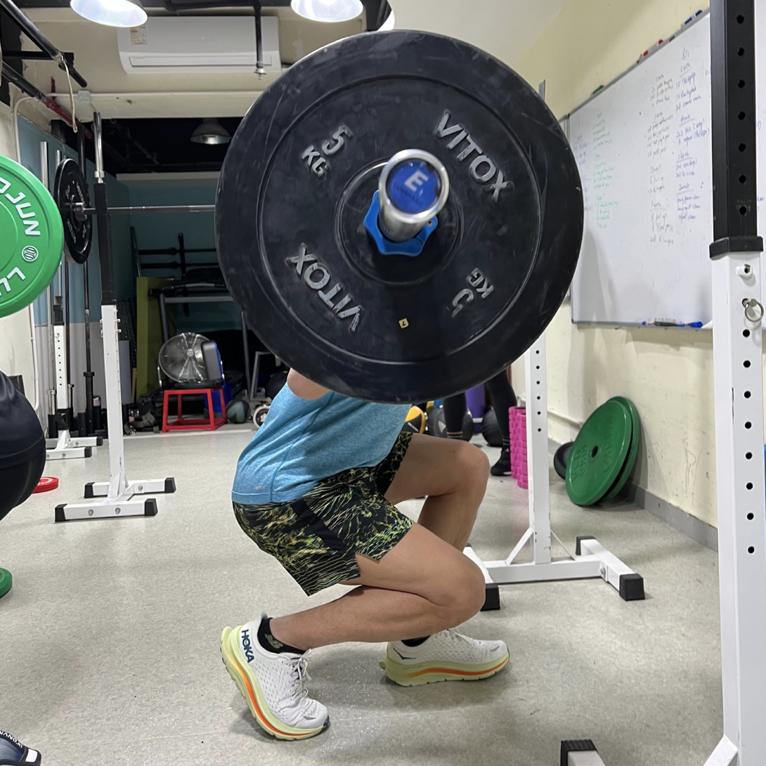 換上用槓鈴(barbell) 訓練,負重雙腳深蹲的穩定性還可以,站起時腳踭用力時中底的硬度是可以感應付。