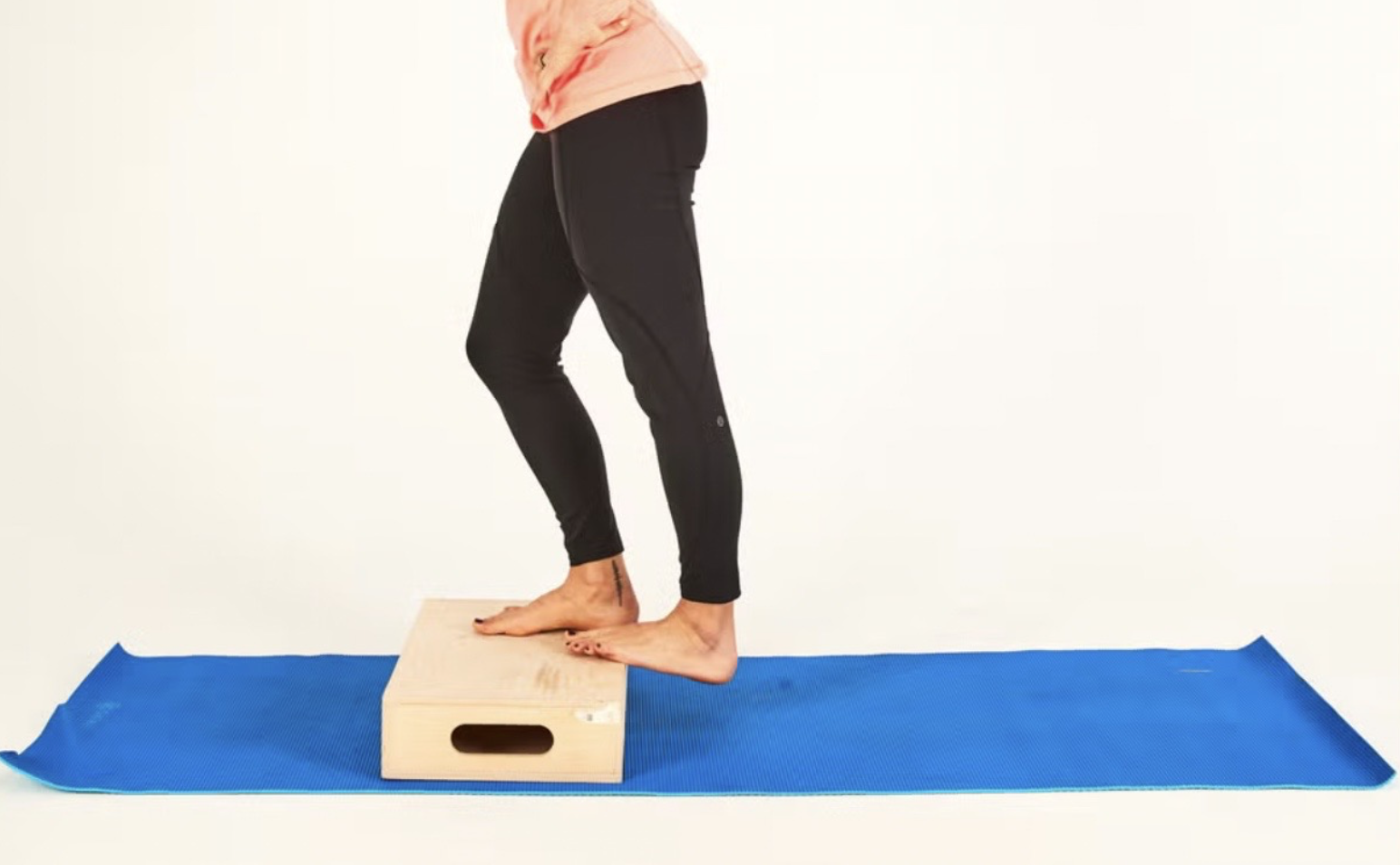 | (5) ► 站在階梯邊緣,腳跟踩在階梯上。 ► 慢慢將腳跟往下壓,直到感覺腳踝後側與小腿肚有明顯伸展感。 ► 維持這個伸展姿勢 30 秒,再重複兩次。 ![]() |
