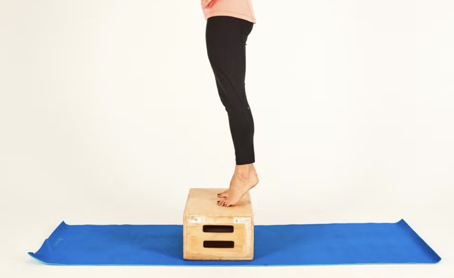 | (1) ► 站在階梯邊緣,抬起腳跟,呈現踮腳尖的姿勢,維持 45 秒。 ► 慢慢放下腳跟,休息 2 分鐘。 ► 重複動作,共 做 5 組。 ![]() |