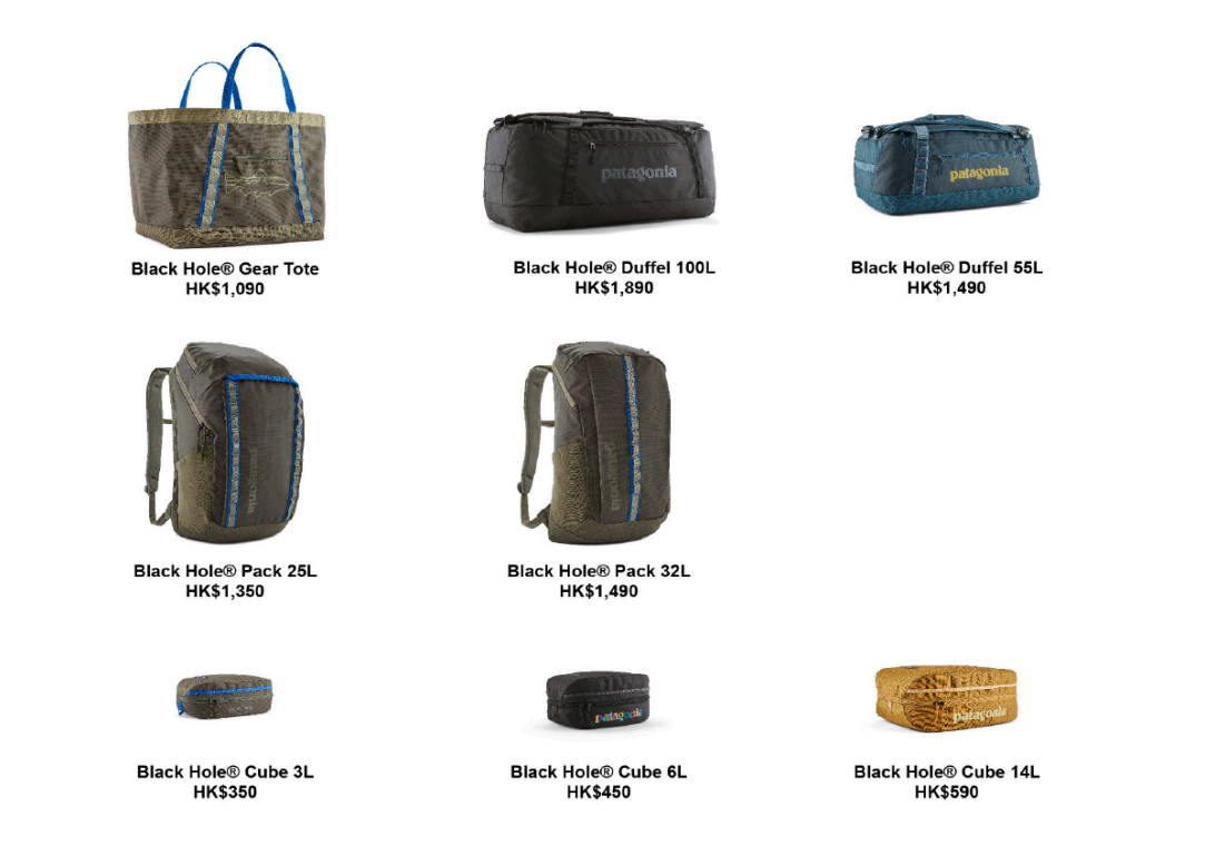 除了穿着的裝備,用於收納及整理行裝的裝備固然也不可或缺。Patagonia 的 Black Hole® 系列一直以超大容量著稱,加上以再生聚酯纖維製成抗撕裂面料,並在表面覆蓋一層抗水的再生 TPU 薄膜塗層,提供卓越的耐用性和對抗惡劣天氣的能力。當中 Black Hole® Gear Tote 這款堅固的超大容量 61升手提袋,足以存放你前往水上活動的所有裝備,而 Black Hole® Cube 小物收納包具備 3、6、14 升三種尺寸,方便你整齊分類各種物品。