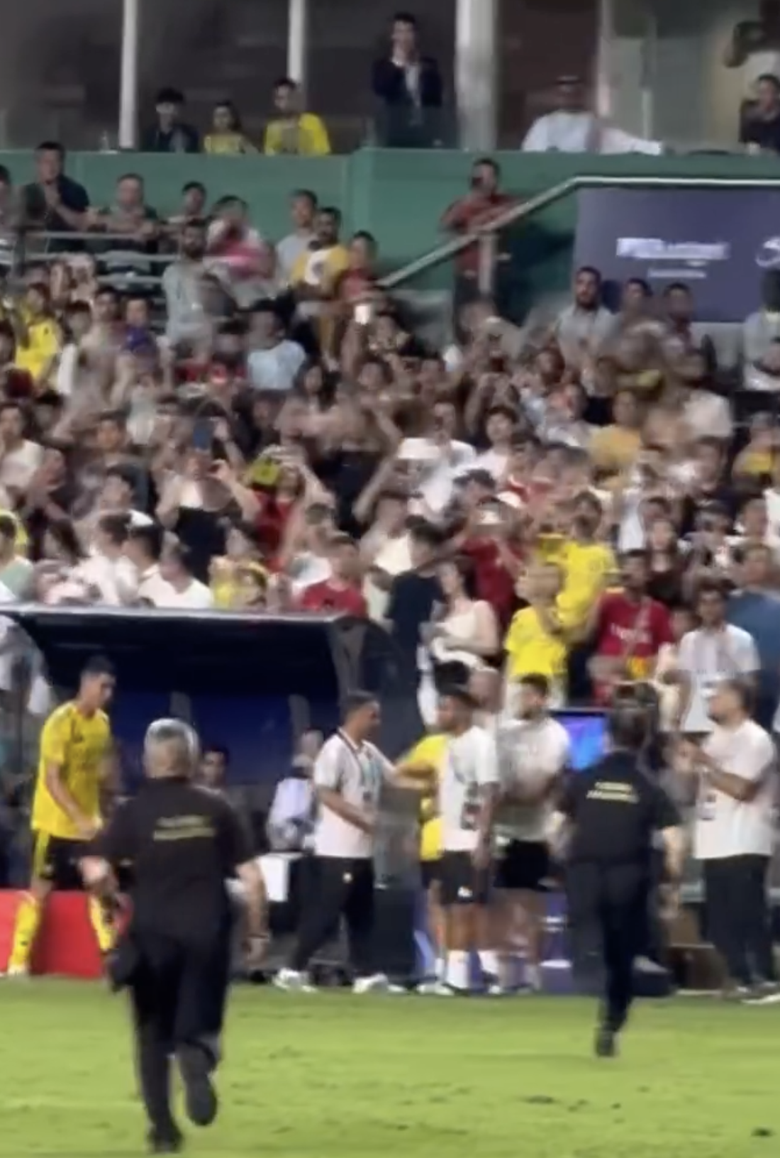 根據現場影片,球迷眼見 C 朗被換出場正準備行往後備席時,球迷以高速奔向偶像,雖然艾納斯的教練 Jorge Jesus 企圖阻止並已示意他離開,但這青年球迷未有理會,更試圖走近 C 朗,結果被保安當場逮住帶走。