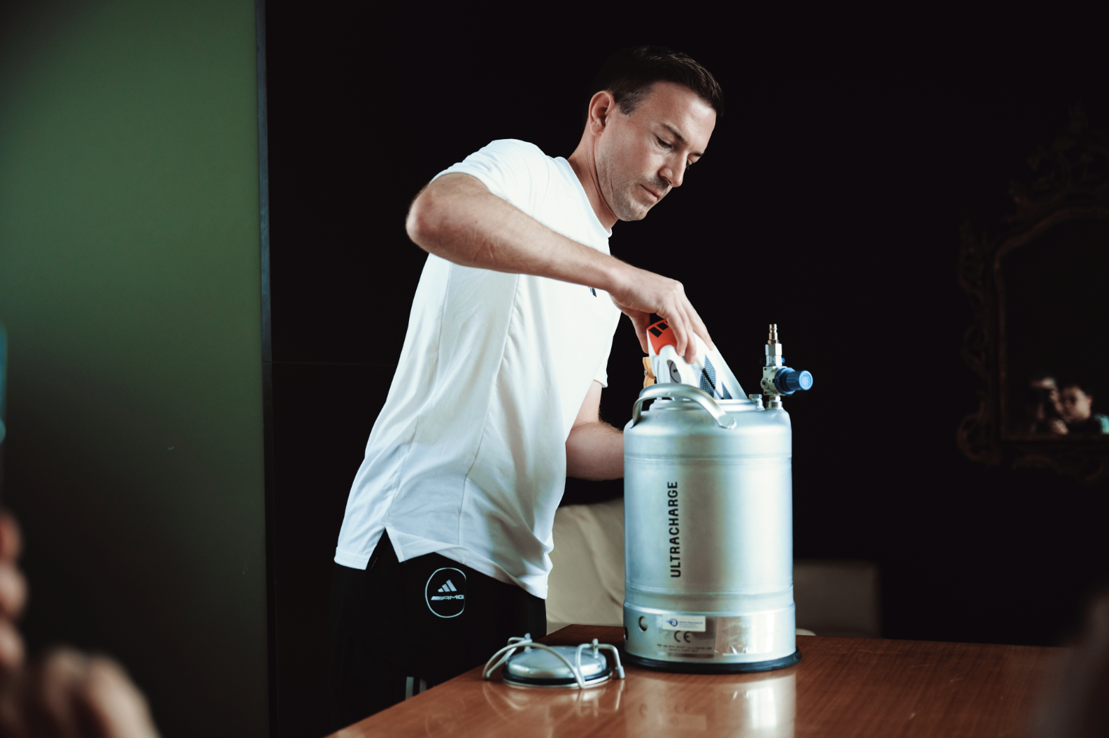 adidas 最新能量回饋技術。比賽前五天,鞋中底置於高壓艙,將氣泡注入泡棉空隙,在高壓下增強能量回饋。
