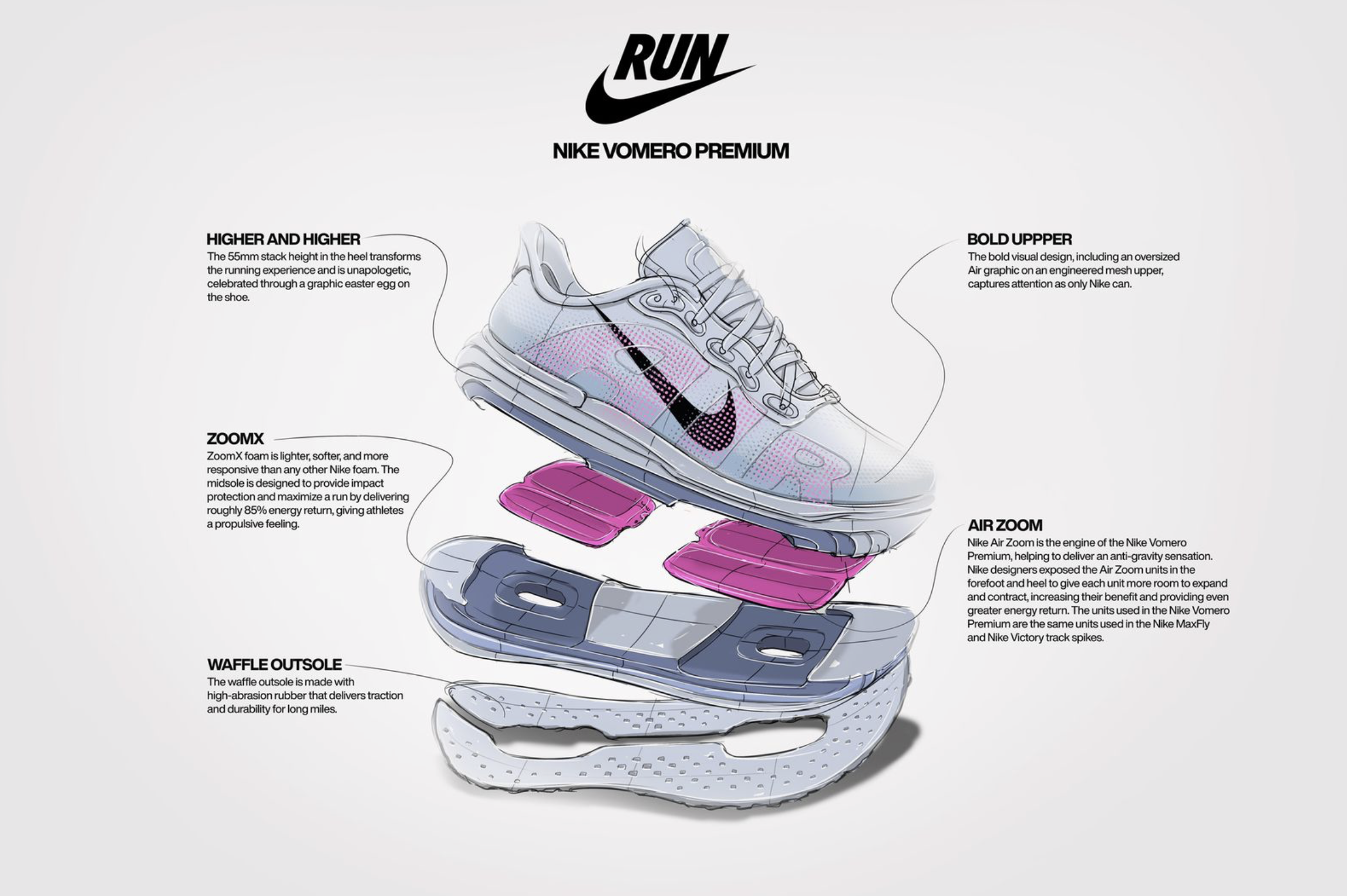 Nike 運用 Air 專利技術所推出的 Pegasus Premium,沿用經典 Pegasus 系列產品深受跑者喜愛的緩震機能,並配置 Nike 首款可見式塑形 Air Zoom 氣墊。 其中塑形 Air Zoom 氣墊貼合自然足形,讓跑者的力量能從腳跟轉換至腳尖,締造 Air Zoom 氣墊前所未有的流暢回彈感受。