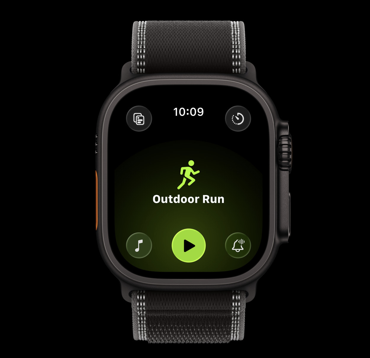 Ultra 3 融合 Apple Intelligence,推出前所未有的 Workout Buddy。這項由 Apple Intelligence 驅動的首創健身體驗能分析使用者的體能訓練資料與健身記錄,根據心率、配速、距離、「活動記錄」圓圈、個人健身里程碑等資料,在運動過程中提供個人化的語音鼓勵內容。此外,「體能訓練」app 亦提供全新版面,使用者能更容易運用「體能訓練顯示畫面」、「自訂體能訓練」、「配速員」、「路線競速」等功能自訂體能訓練。使用者現在也能在 iPhone 的「健身」app 中,方便地檢視與建立體能訓練,包括「自訂體能訓練」,並能透過 Apple Watch 上的「體能訓練」app 輕鬆取用。