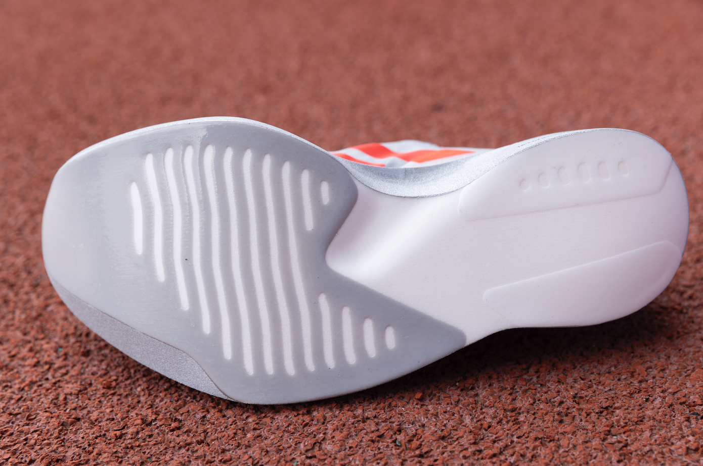 最終 adidas 成功讓前掌增厚 3mm,據測試可以增加 5% 能量回饋,而且整隻鞋重量不變。另外,針對鞋底橡膠也做出微調,不再是彷彿光頭胎一般沒有任何花紋、溝槽,這讓筆者想起 2023 年肯雅女將 Tigist Assefa 在柏林馬造出當時的世界紀錄,他腳下那雙 ADIZERO Adios Pro Evo 1 鞋底就有局部鏤空,與市售版不同,如今看到 ADIZERO Adios Pro Evo 2 也給出類似做法。