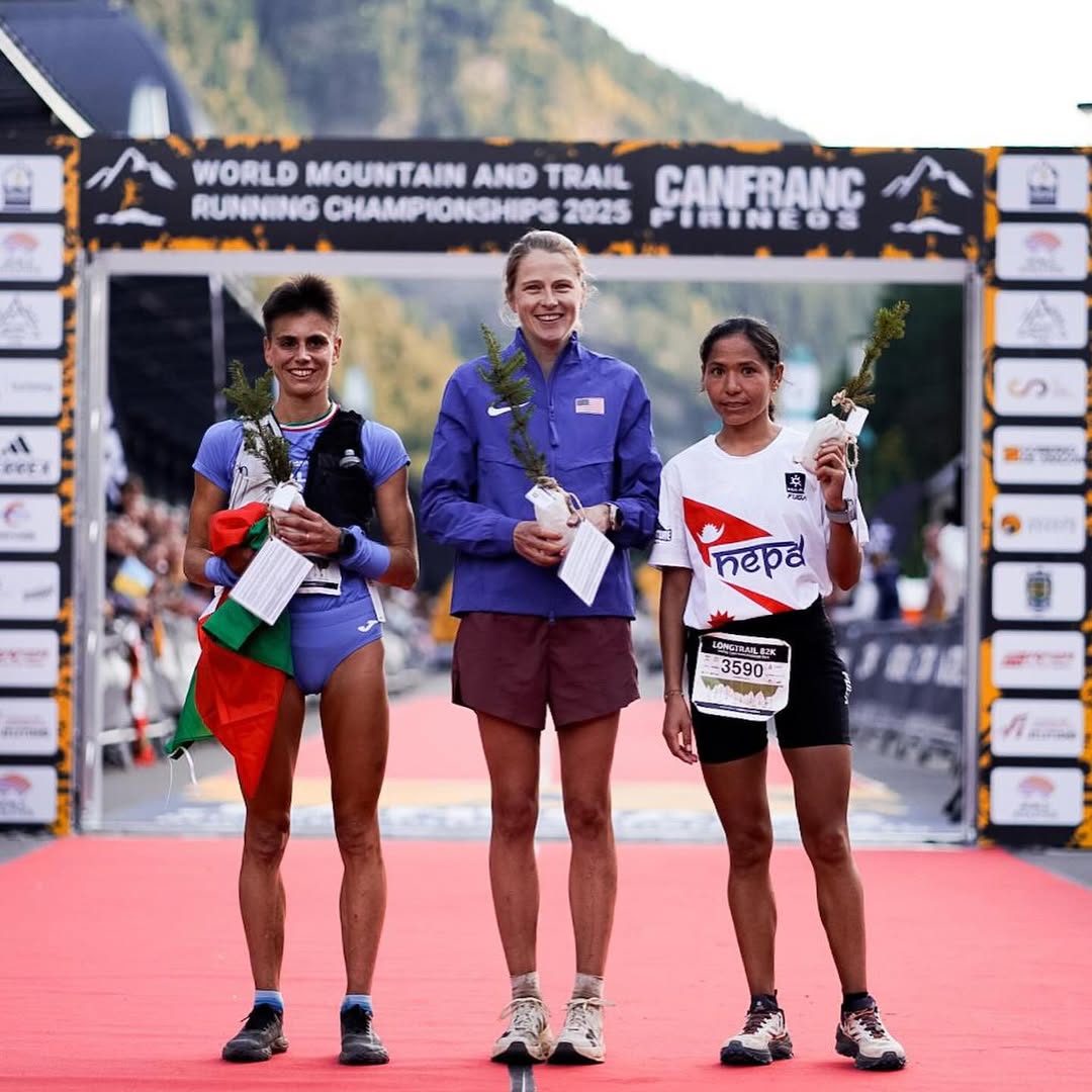 在剛過去的周末,於西班牙 Canfranc Pirineos 上演的 2025 年世界山徑越野錦標賽(WMTRC)長距離賽事中,女子組由賽前大熱,去年 UTMB 冠軍美國跑手 Katie Schide 跑出 9:57:59 輕鬆勝出,約半小時後,另一位女選手到達終點,以穩定步速出現在大家眼前的正是 Sunmaya Budha,她身披尼泊爾國旗,衝過了終點。就在她即將衝過終點線時,她穩住了身形,向世界展示了尼泊爾越野跑運動員的實力。這也是 Sunmaya 繼 2022 CCC 奪得亞軍後,再次揚威國際越野山賽。