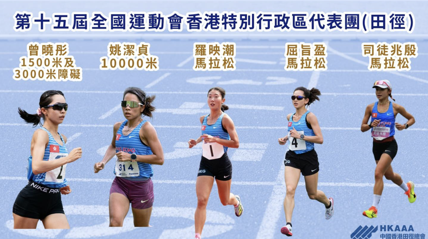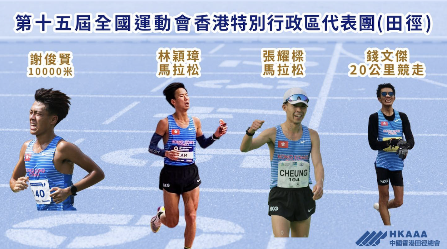 第 15 屆全國運動會將於 11 月 9 至 21 日舉行,田總日前公布了出戰田徑項目的運動員名單,包括 25 男、26 女選手出戰多項賽事,長距離徑賽方面,包括有謝俊賢(10000米)、錢文傑(20公里競走)、林穎璋、張耀樑(馬拉松)、曾曉彤(1500米及3000米障礙)、羅映潮、屈旨盈、司徒兆殷(馬拉松)。另外,跨欄女將呂麗瑤將個人第四度出戰全運會。