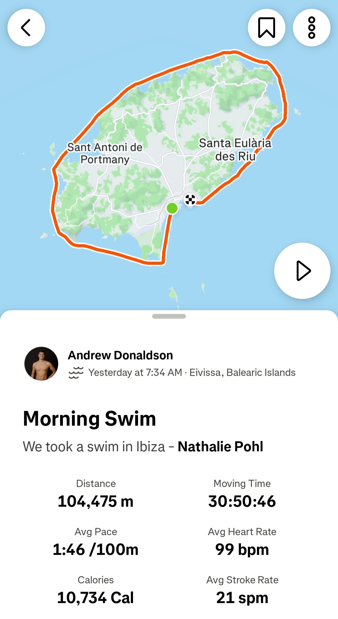不間斷環游伊比薩島?沒錯,德國極限泳將 Nathalie Pohl 辦到了!這位曾征服地球上七大洋的泳者,如今再創壯舉,她花了 30 小時 57 分 49 秒,以接力方式繞行西班牙巴利阿里群島中的派對天堂伊比薩島(Ibiza),全程超過 104.5 公里,成為首批完成此壯舉的人之一。