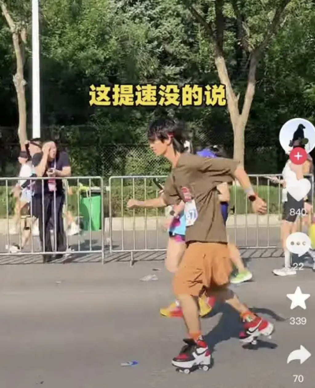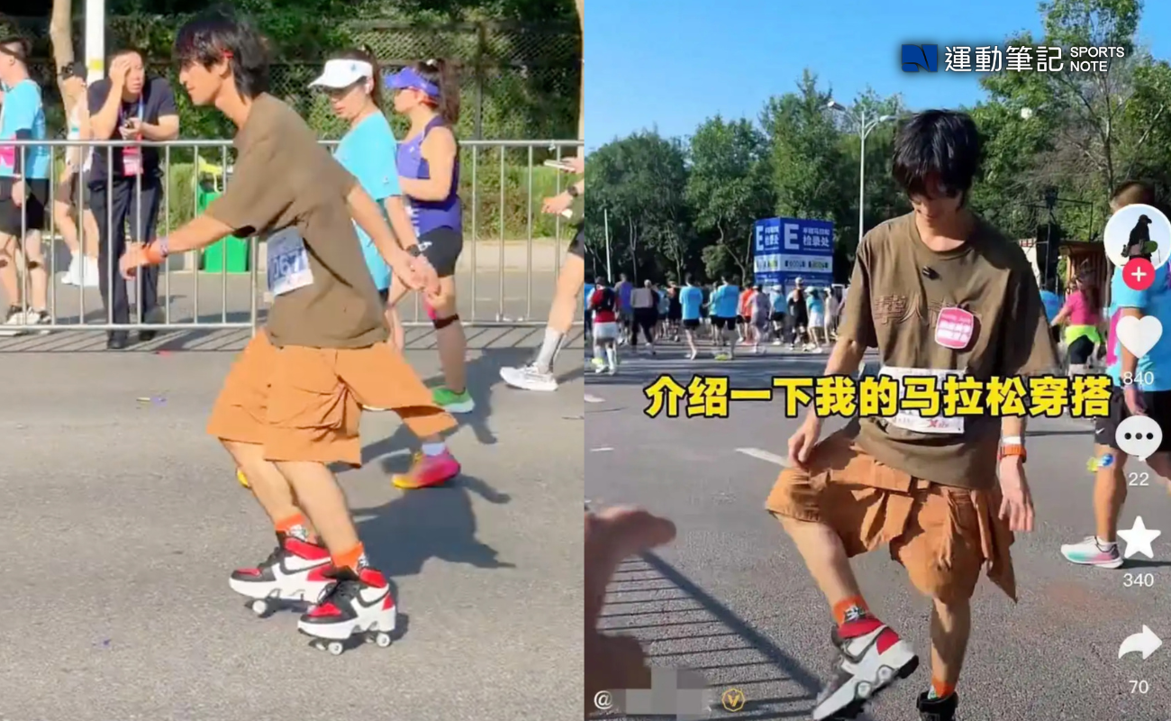 至於涉嫌穿著滑輪暴走鞋「跑步」的林姓年青網紅,比賽當天更毫不吝嗇在社交平台上拍片介紹其裝備的過人之處,他表示自己所穿的一雙暴走鞋主打競速,時尚又方便,不但可以空中滑步奔跑,累了還可以打開暴走輪滑模式「滑到終點接著跑就好了」!
