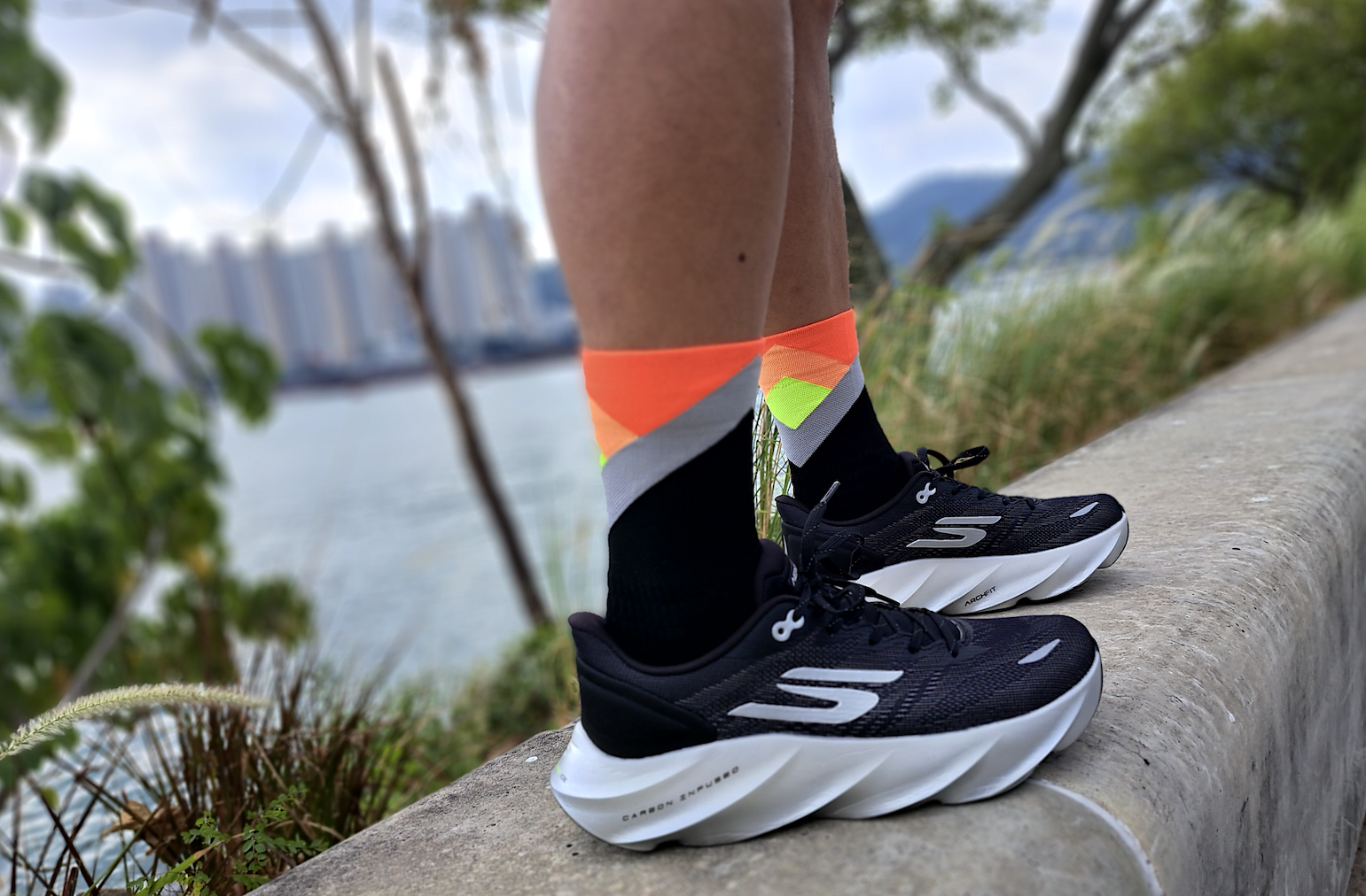 Skechers Aero Burst 擁有 42mm 的 Hyper Burst Ice 緩震系統及碳纖維 H 型支撐板,所有這些都旨在提供極致舒適的跑步體驗。它不會軟得像流沙一樣,但由於弧形幾何結構和超臨界中底,它擁有舒適的抓地力和出人意料的回彈力。寬大的鞋底賦予了它極佳的穩定性。在實測的過程中,Aero Burst 在高速運動中的表現令筆者感到驚喜;雖然需要一些時間來加速,但一旦加速,它就能很好地控制住節奏,如果您想要一雙輕鬆駕馭日常和長距離跑步的跑鞋,這款跑鞋絕對值得一試。