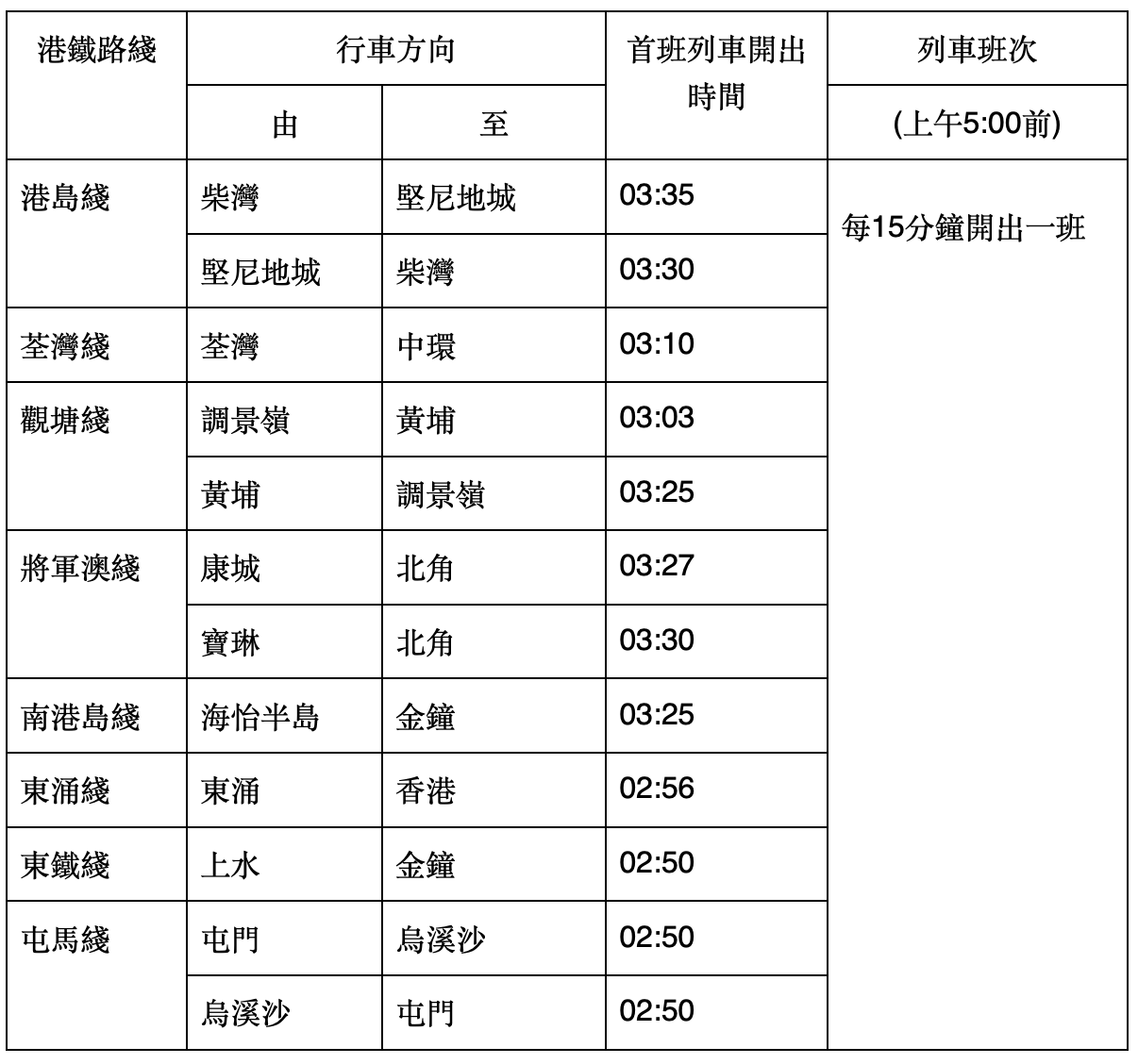 港鐵將於活動當天提早開出首班車以接載馬拉松及半馬拉松的跑手前往賽事起點。 詳情如下: