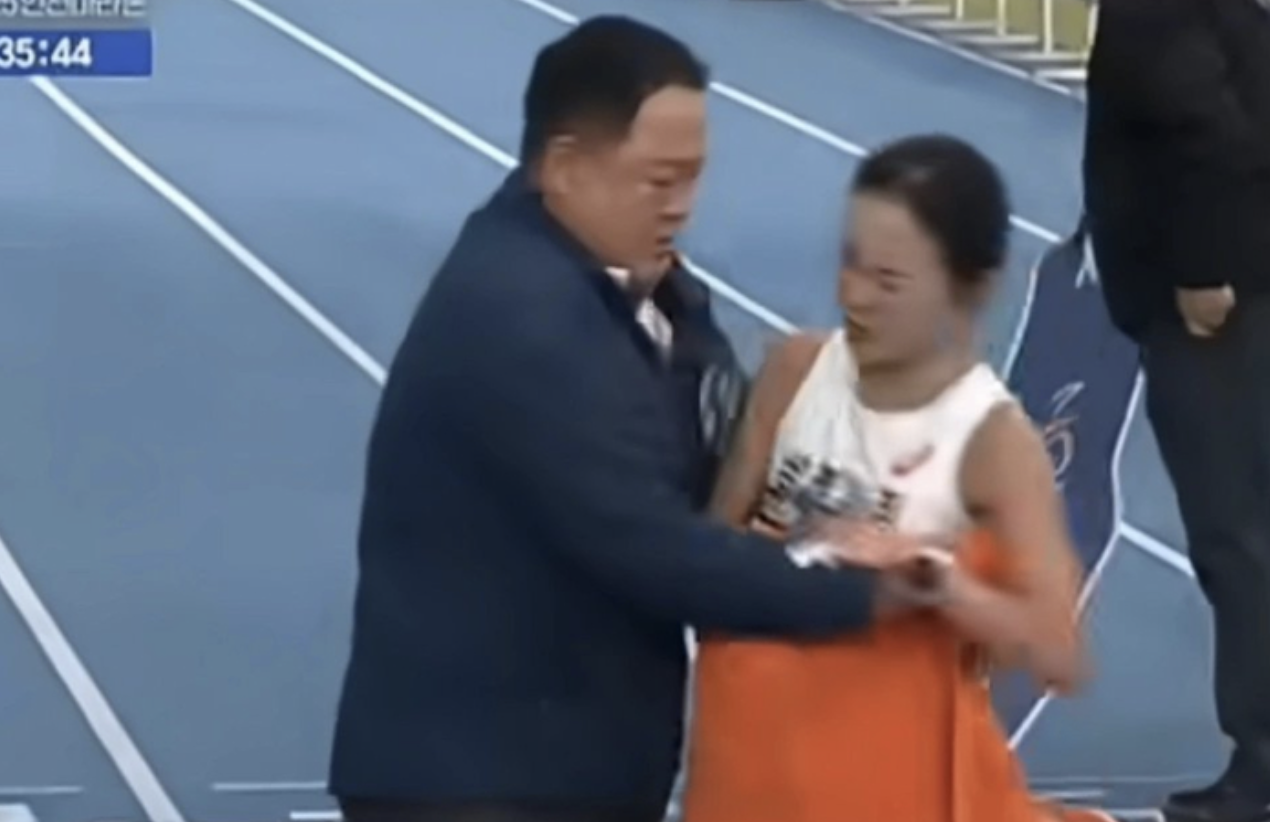 日前舉行的仁川國際馬拉松出現了爭議性的一幕!當韓國女跑手李秀敏以國內女子組第一名的成績沖過終點後,其教練金完基立刻走近她,試圖拿毛巾包裹住李秀敏的上半身。然而,就現場畫面所見,李秀敏對於教練的舉動表現抗拒更發力推開教練,有推測金教練是因為過度接觸身體,所以李秀敏表現出了不快。更有網民直言教練「存心抽水」!事後金完基表示,李秀敏就自己的「過度」舉動經已向他道歉。