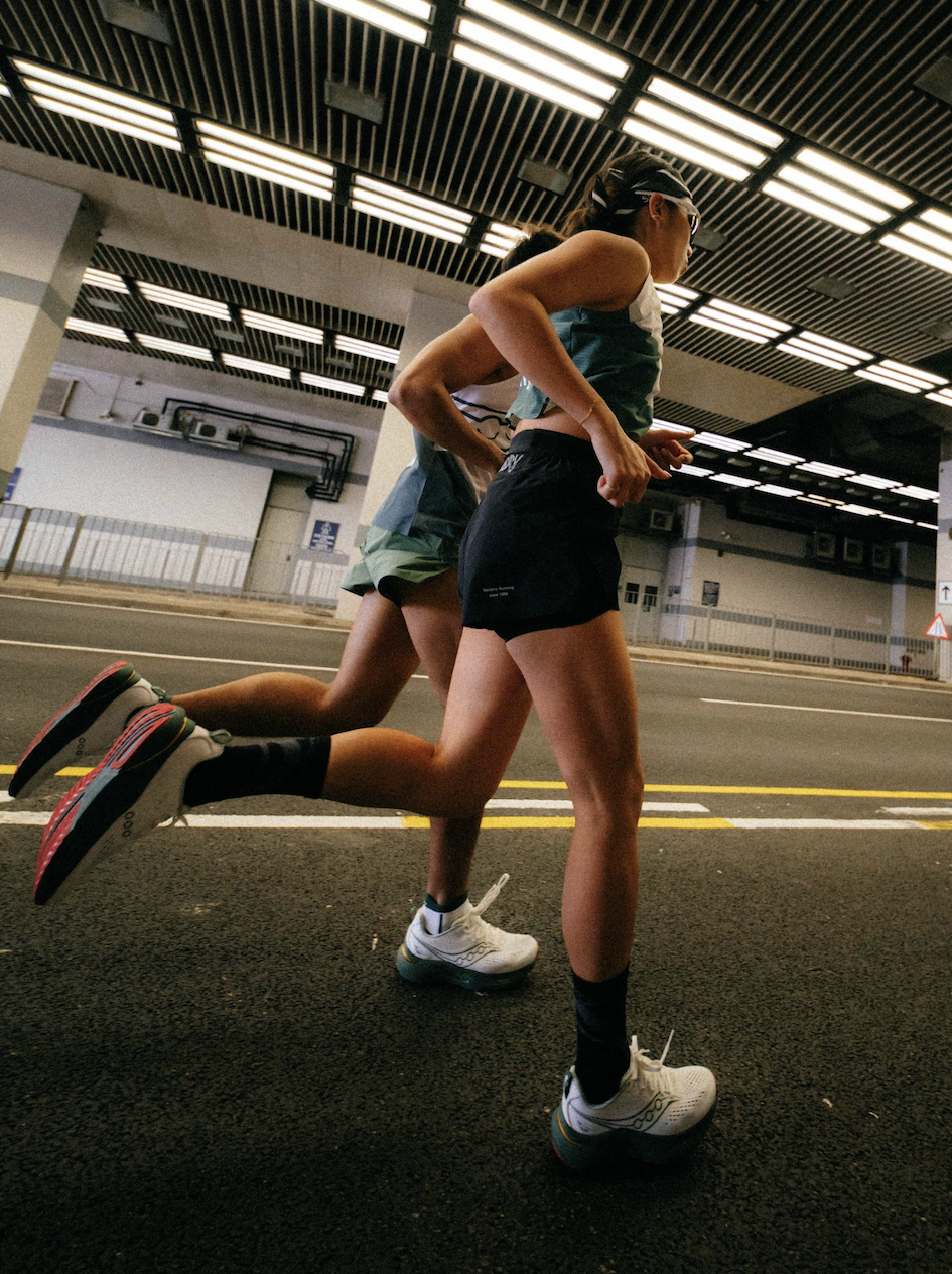 整個宣傳企劃由 Saucony 香港跑者團隊主導,從創意概念到拍攝執行,全由跑手親自參與——包括策劃、模特兒、攝影及後期製作。故事以「腳下的香港」為靈感,取材自本地跑者真實的日常路線——從凌晨的中上環狹巷出發,穿過熟悉的街燈與霓虹;再踏上渡海航程,望向維港兩岸的晨曦;最後於尖沙咀碼頭邊以一杯咖啡作結。這條路線,正是許多本地跑手熟悉的節奏與情懷。