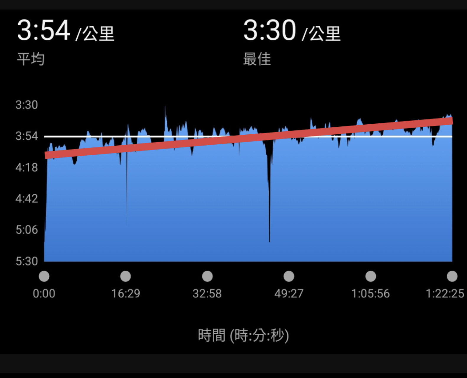 均速跑的配速則像一條水平的線,平穩為主 圖|Barry