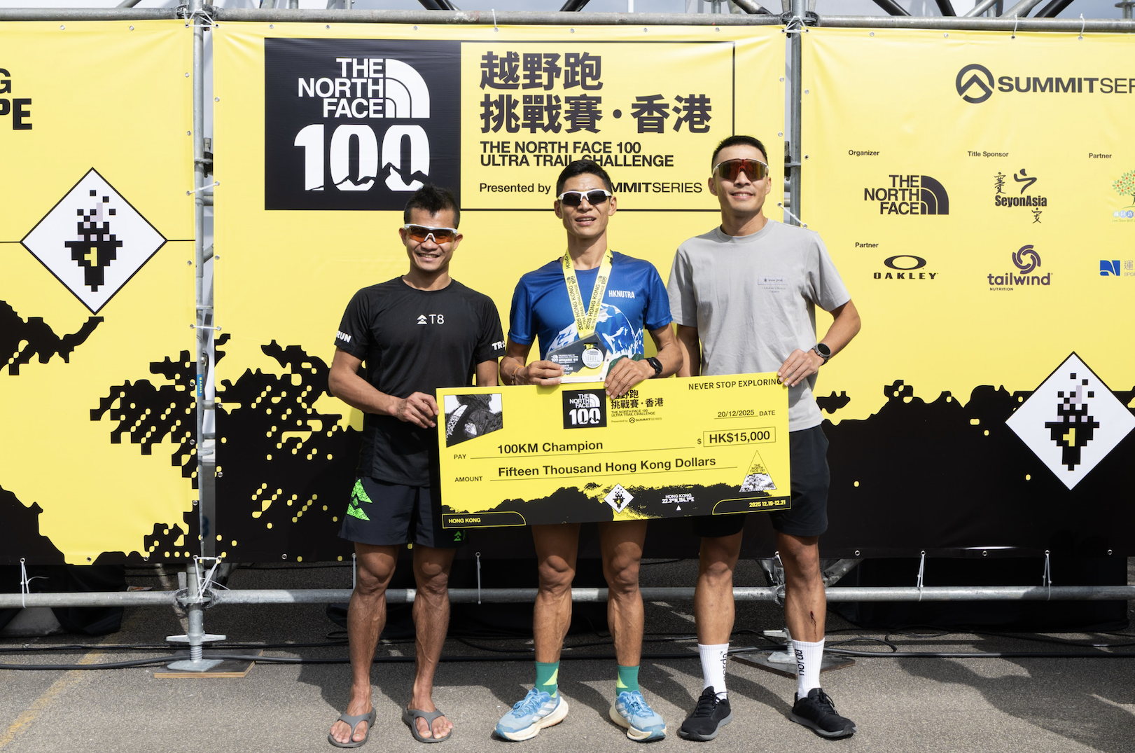 100 公里個人賽,尼泊爾籍跑手 Rai Kulung Arjun 三度參賽終問鼎冠軍;中國選手付華榮摘女子后冠;至於由「山界達人」曾小強率領的 The North Face Summit Running Club - The Youth Team 亦不負眾望,初次參賽便以 12 小時 49 分鐘 23 秒成績完成這場極限山野環線挑戰,勇奪亞軍。