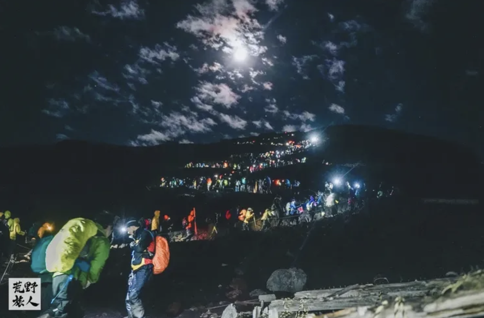 第二天一早凌晨從山屋起登,在日出時分登頂富士山欣賞御來光(ごらいごう),指的是在富士山頂峰「十合目」上,日出時閃耀的璀璨光環。