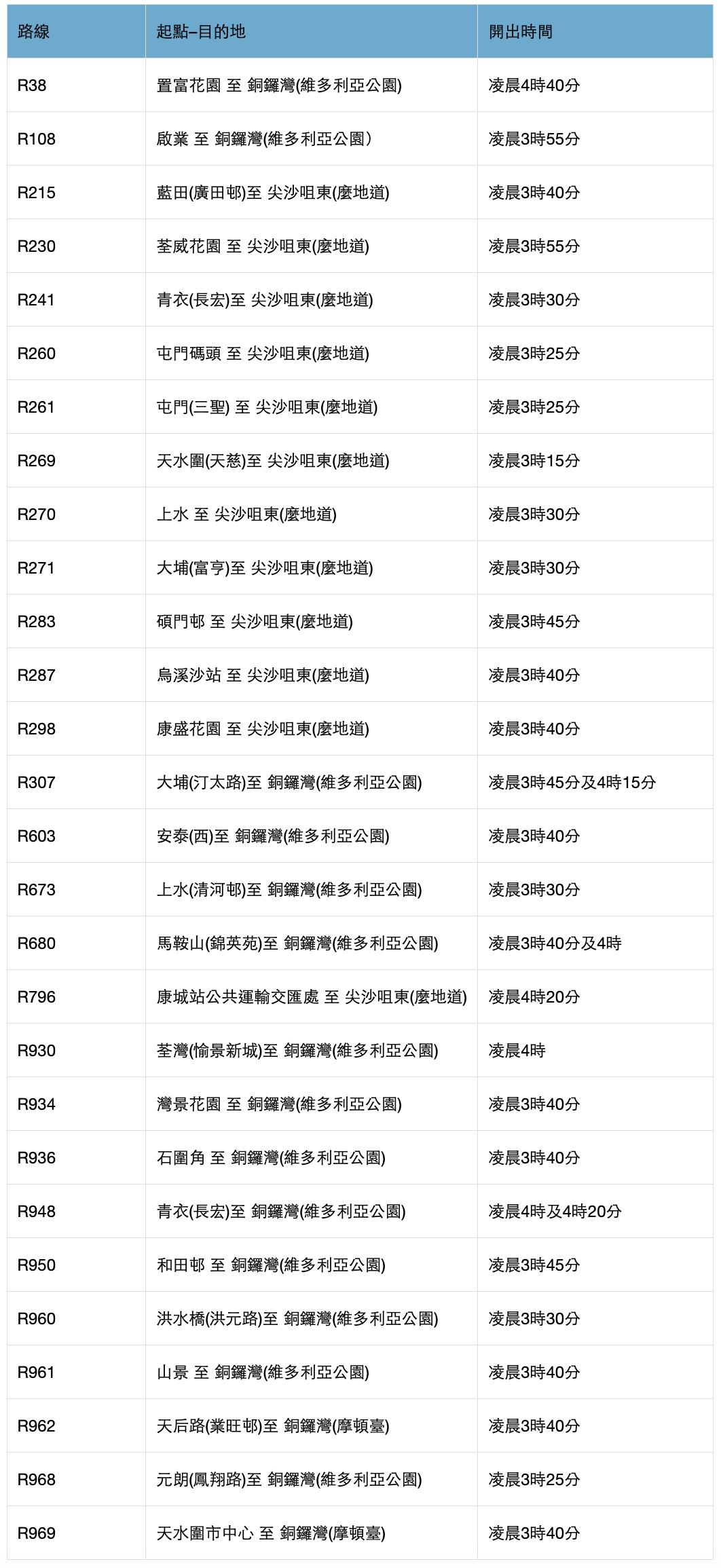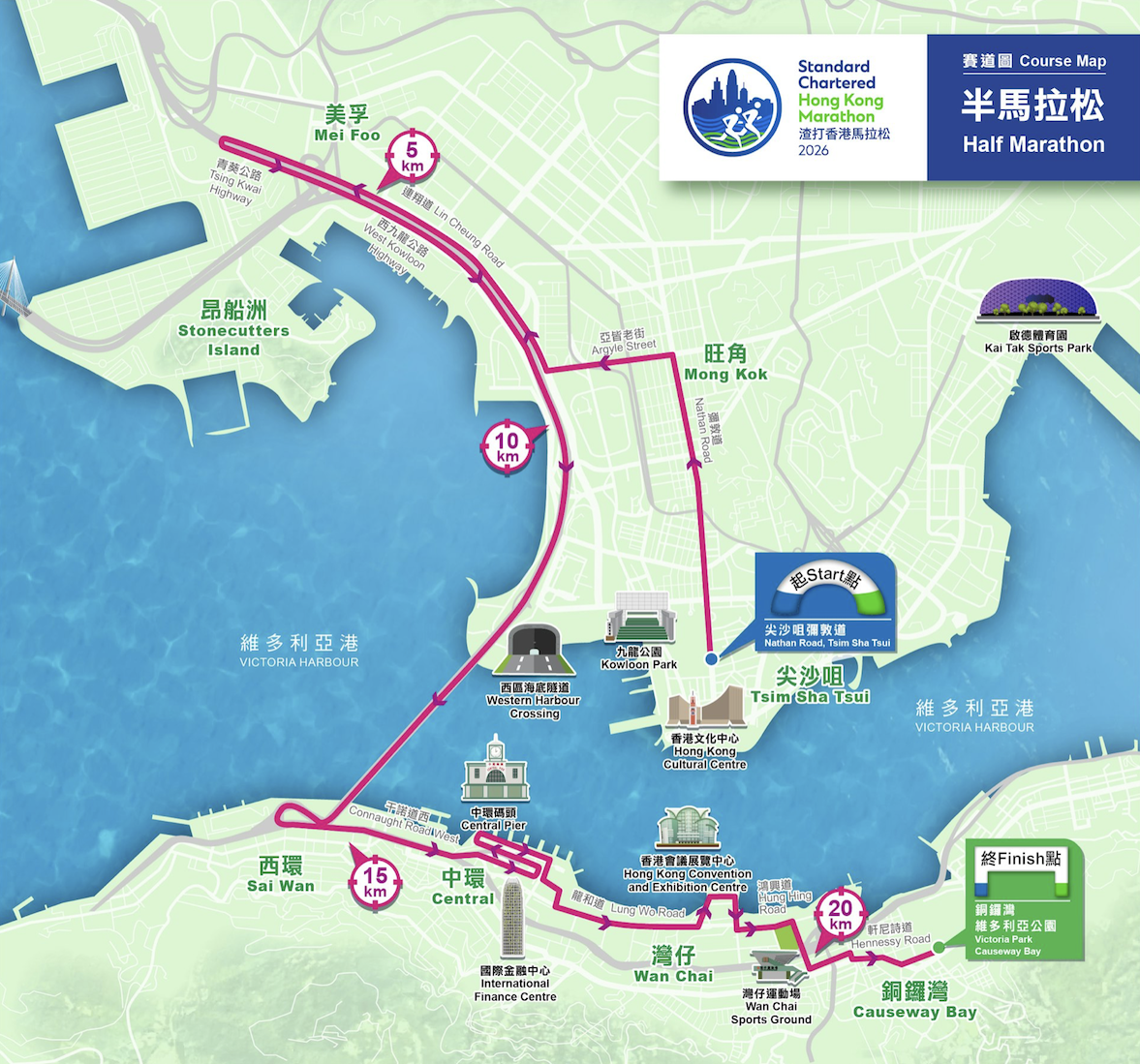 為方便參賽人士前往銅鑼灣或尖沙咀,以下特別巴士路線會於 1 月 18 日(星期日)提供服務:
