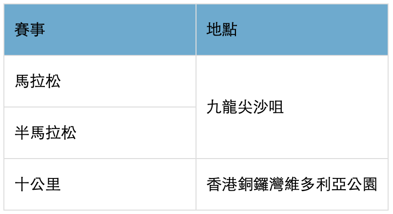 | 地點 | 跑手包領取時間 | |
