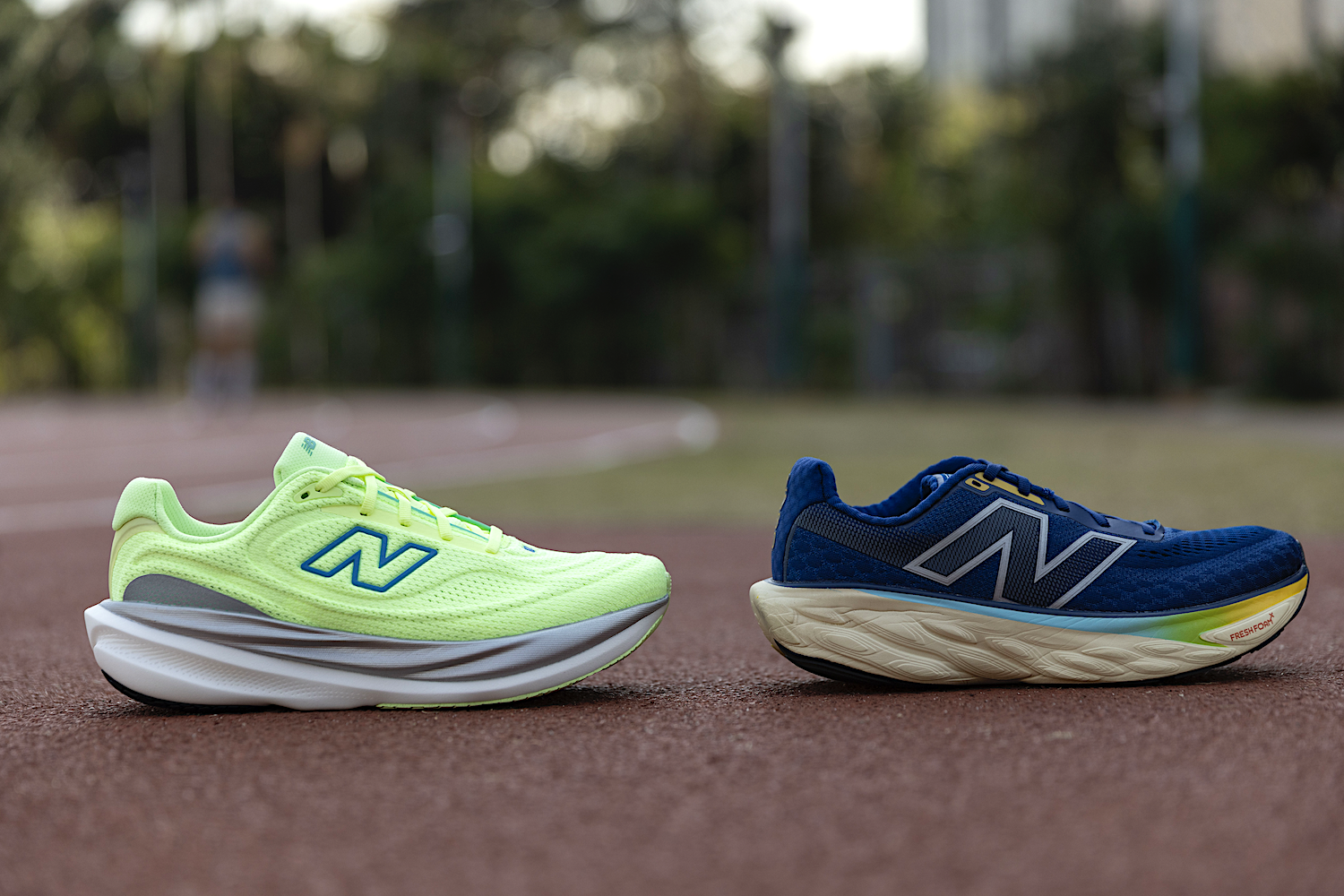 v15 (左)配備的 Infinion Foam 採用超臨界製程將氮氣注入中底,比 v14(右)採用的 Fresh Foam 更輕盈(圖:運動筆記編輯部)