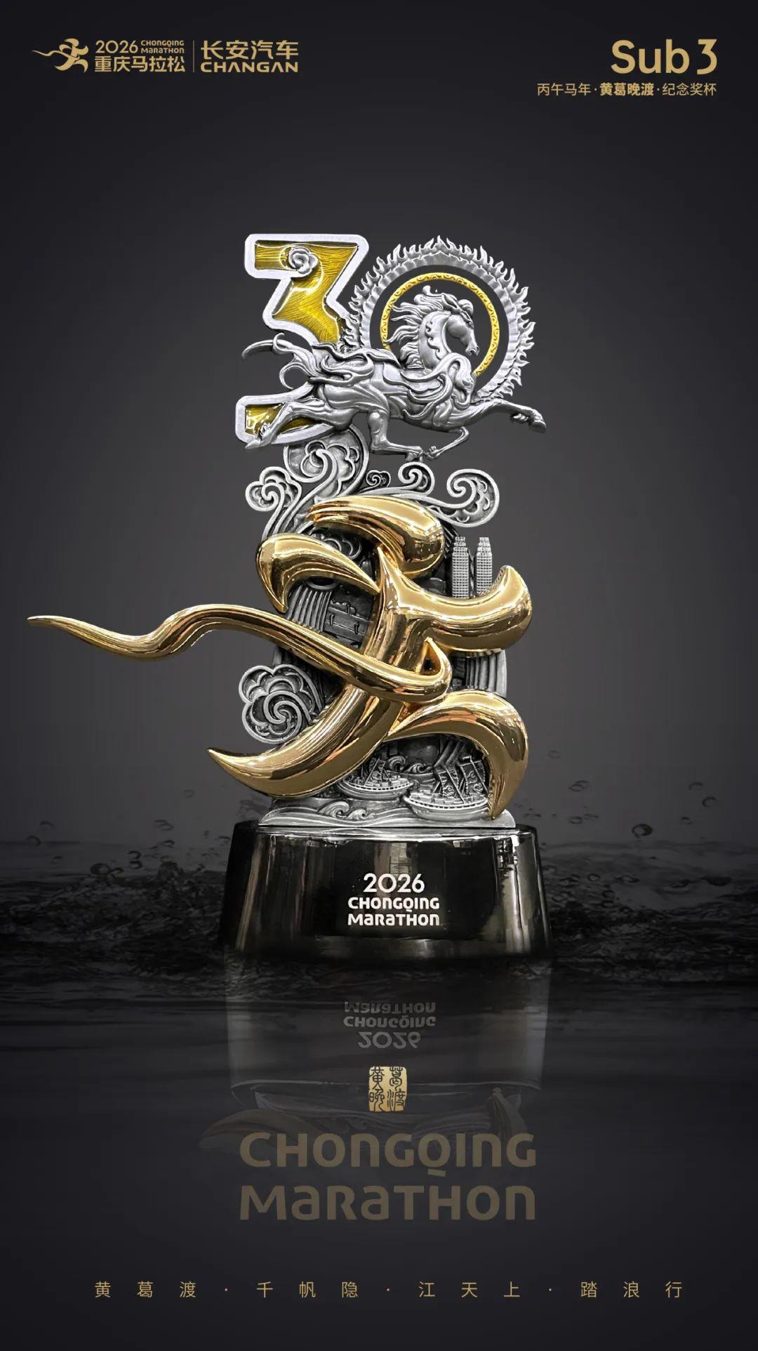 重慶馬拉松破三選手可得到的紀念獎盃(圖:重慶馬拉松)