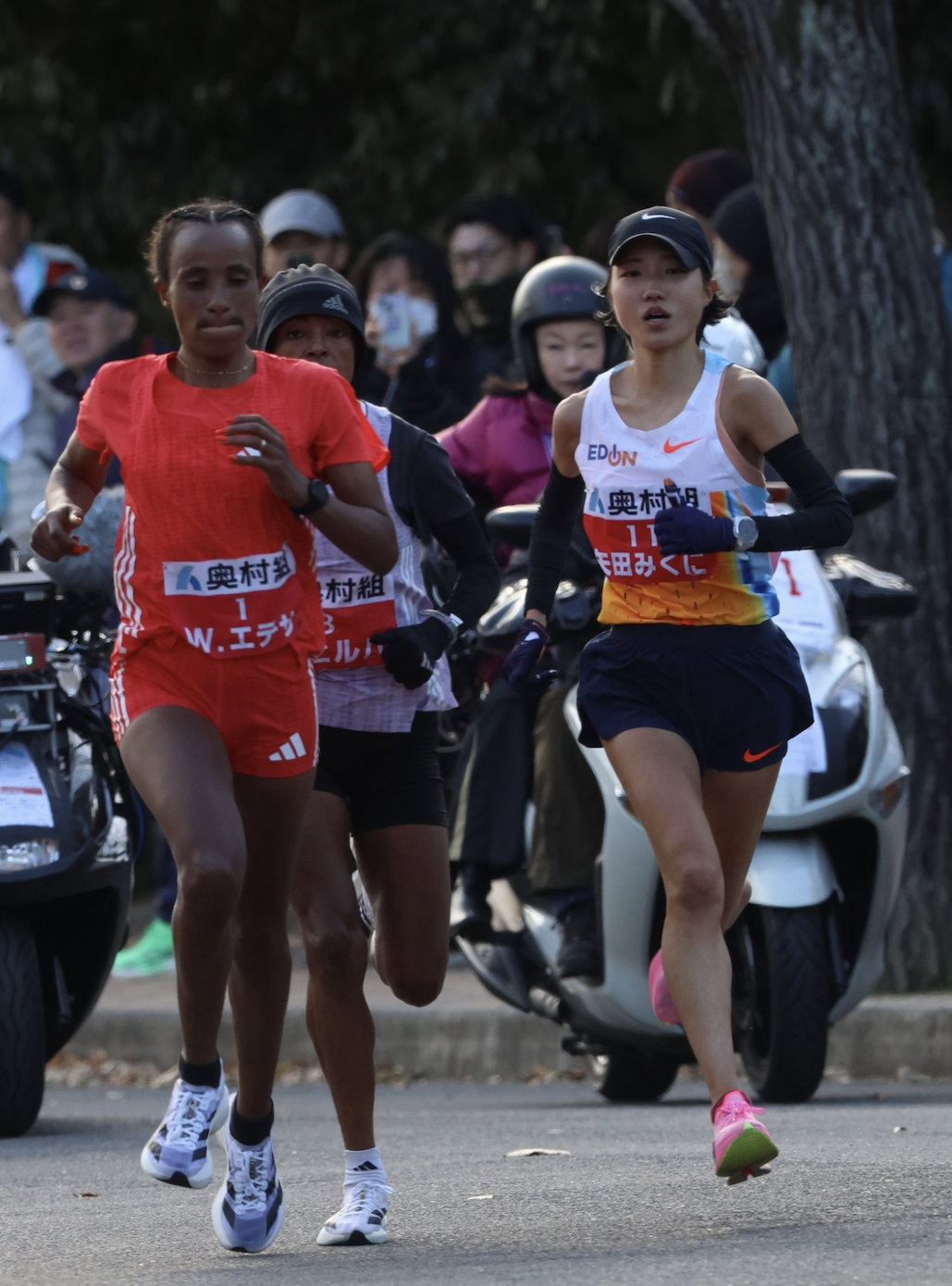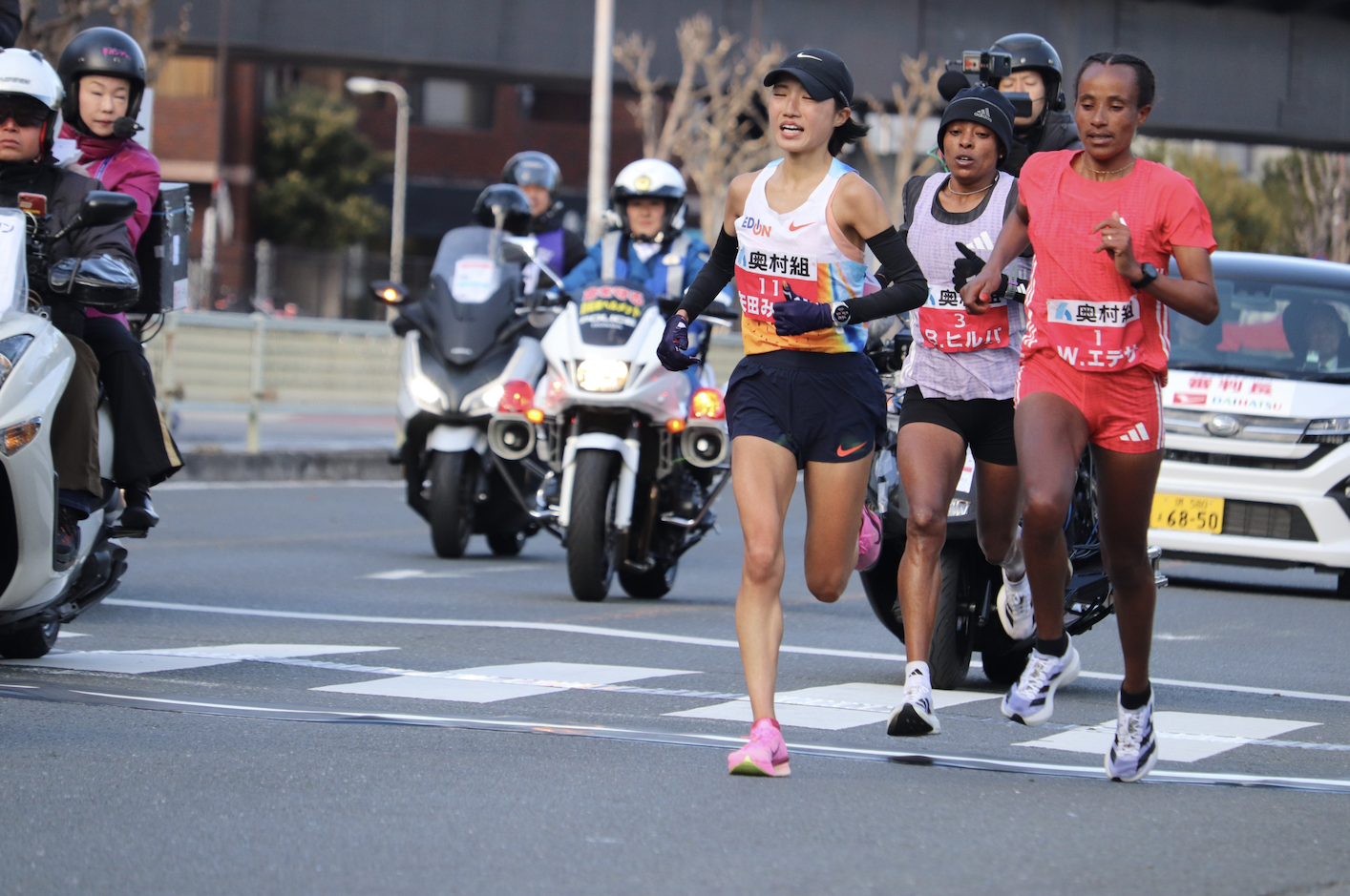 對於從未參加過全馬甚至半馬,矢田賽前能否堅持跑完 20 公里還是個未知數。比賽過程中她以 1:39:21 的成績通過了 30公里標記點:「在最後 10 公里,即使是田徑比賽,也會有被連續超越的情況,所以我想起了 10000 米比賽,就一直堅持到了最後。」他展現了驚人的毅力,儘管在距離終點約 3 公里處落後於領先集團,但他展現出了頑強的鬥志,與兩位埃塞俄比亞跑手Bedatu Hirpa 及 Workenesh Edesa 展開了激烈的第二名爭奪。雖然最終在衝刺階段落敗,但他依然跑出了令人矚目的成績。
