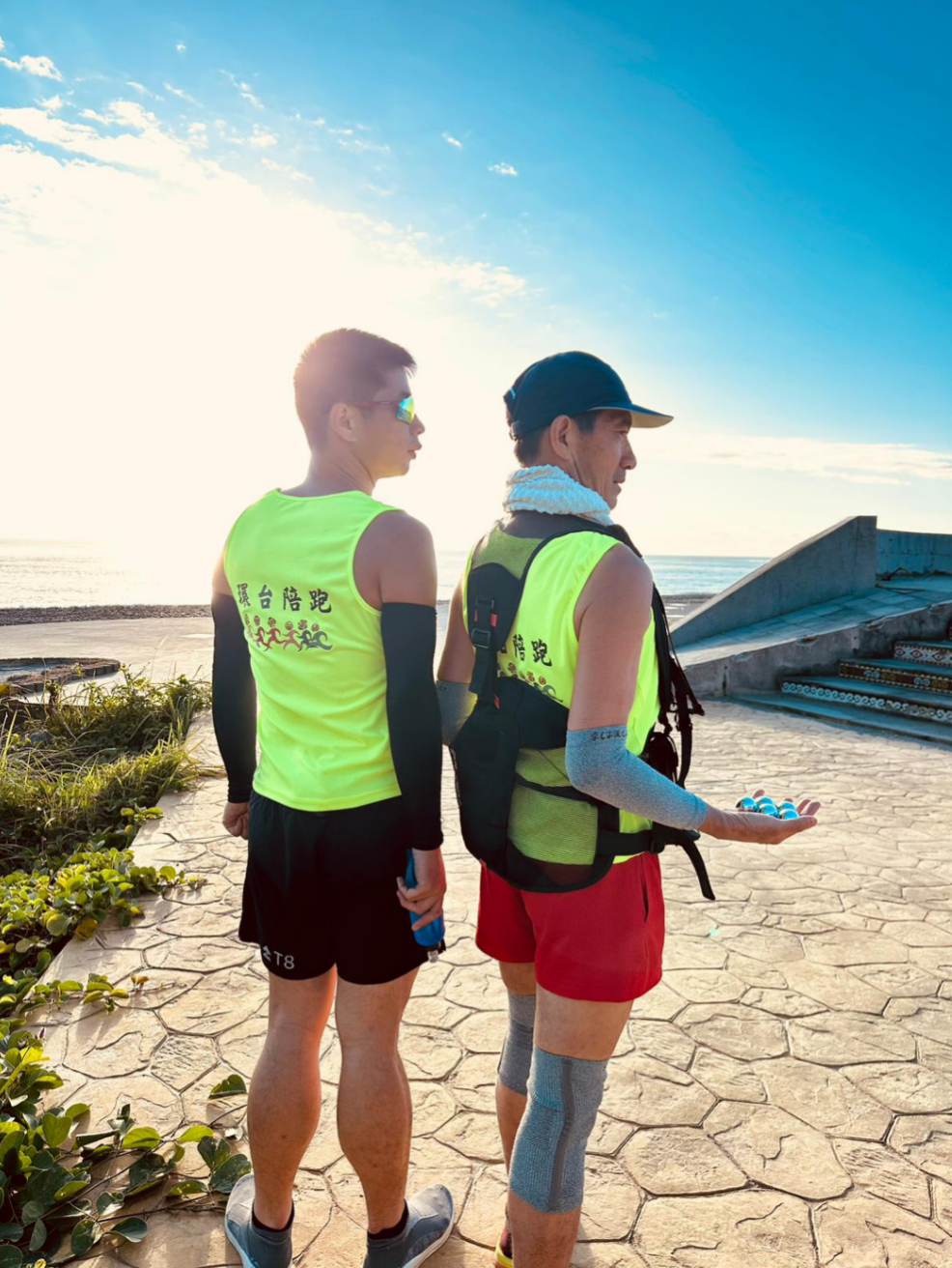 「超馬老爹」羅維銘也在我們當中。這位前輩四度參加紐約 Self-Transcendence 3100 Mile Race,在 52 天時限內,以 45 天 12 小時 37 分 55 秒跑完近 5000 公里,還打破 60 歲以上組別世界紀錄。而且,他是穿著「人字拖」完成的。環台期間,我親眼看到他邊跑邊轉動手上的十顆鐵球,那種專注是一種修行。