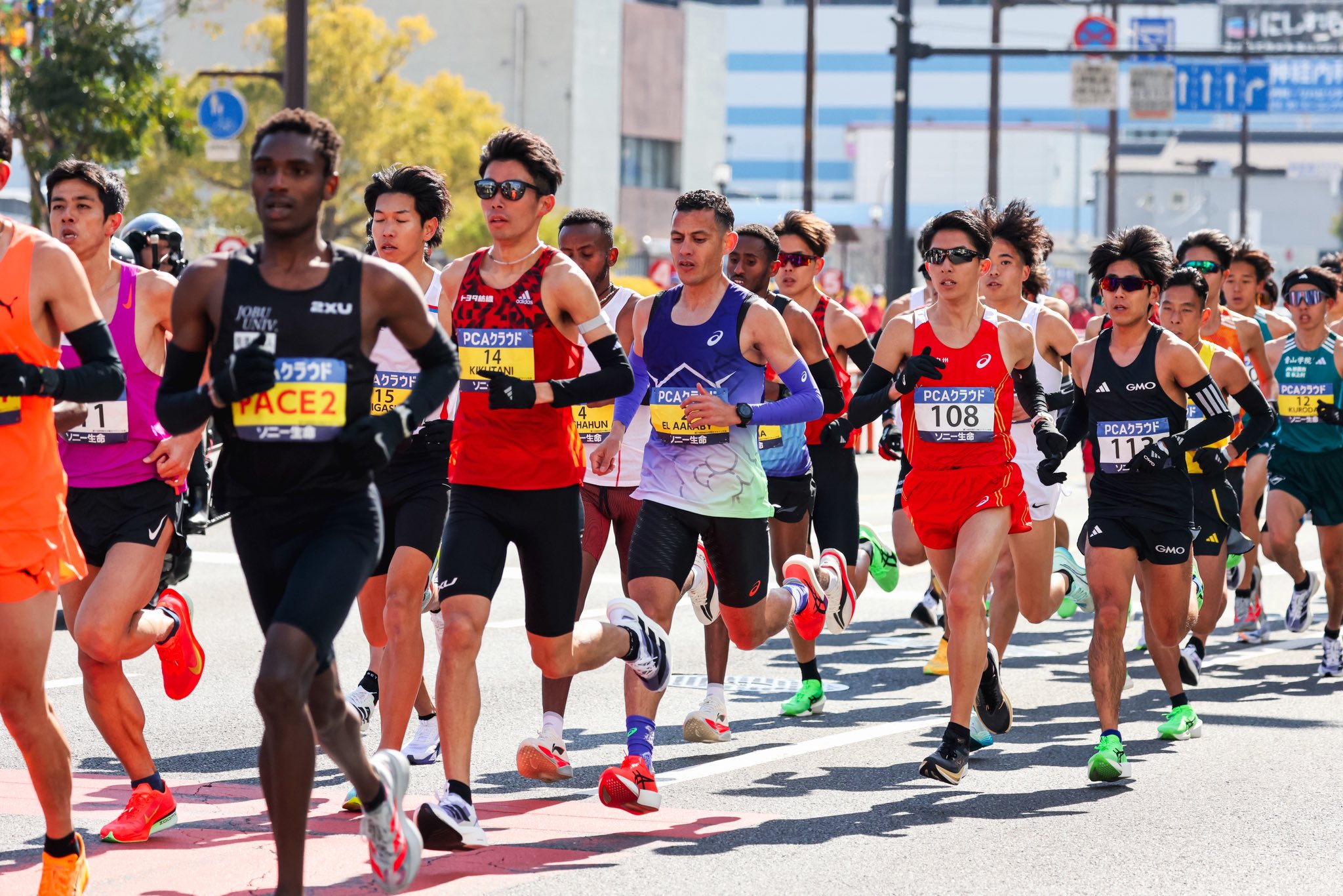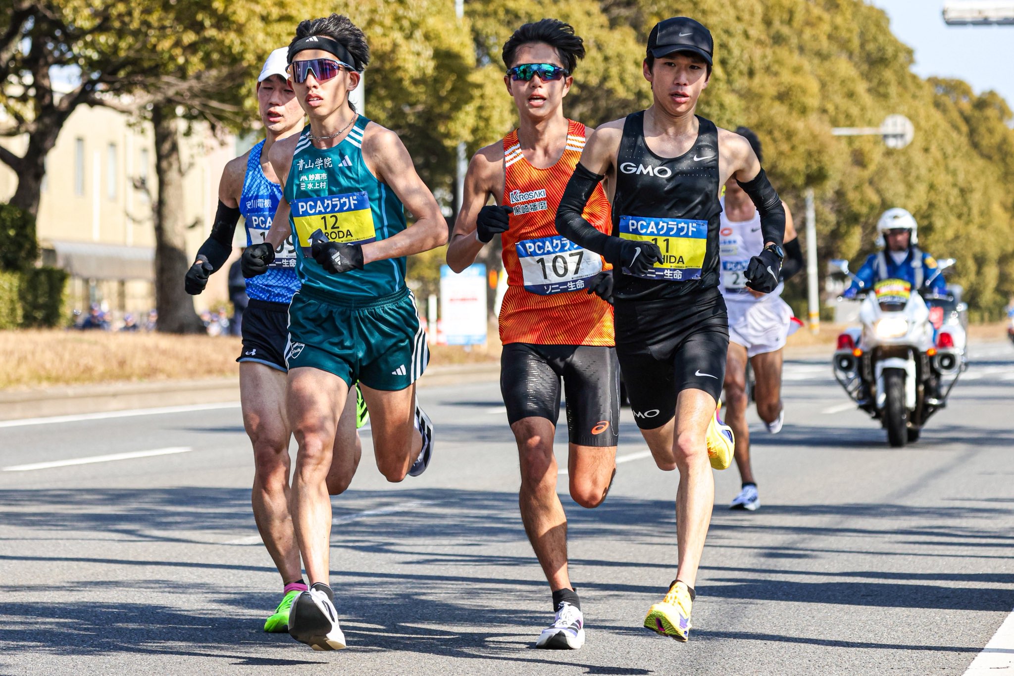 賽事前半段,領先集團以每公里約 3 分速的配速穩定推進,通過 10 公里用時為 30 分 07 秒。然而,在平穩的節奏下卻意外不斷,約莫 11 公里處時,埃塞俄比亞選手 Abe Gashahun 不慎跌倒;隨後,16 公里處補給站,日本選手伊福陽太也發生摔倒意外,儘管波折不斷,但持有大會最快紀錄的吉田祐也、及日本大學生紀錄保持者黑田朝日依然展現極高的穩定性,始終位居集團核心。