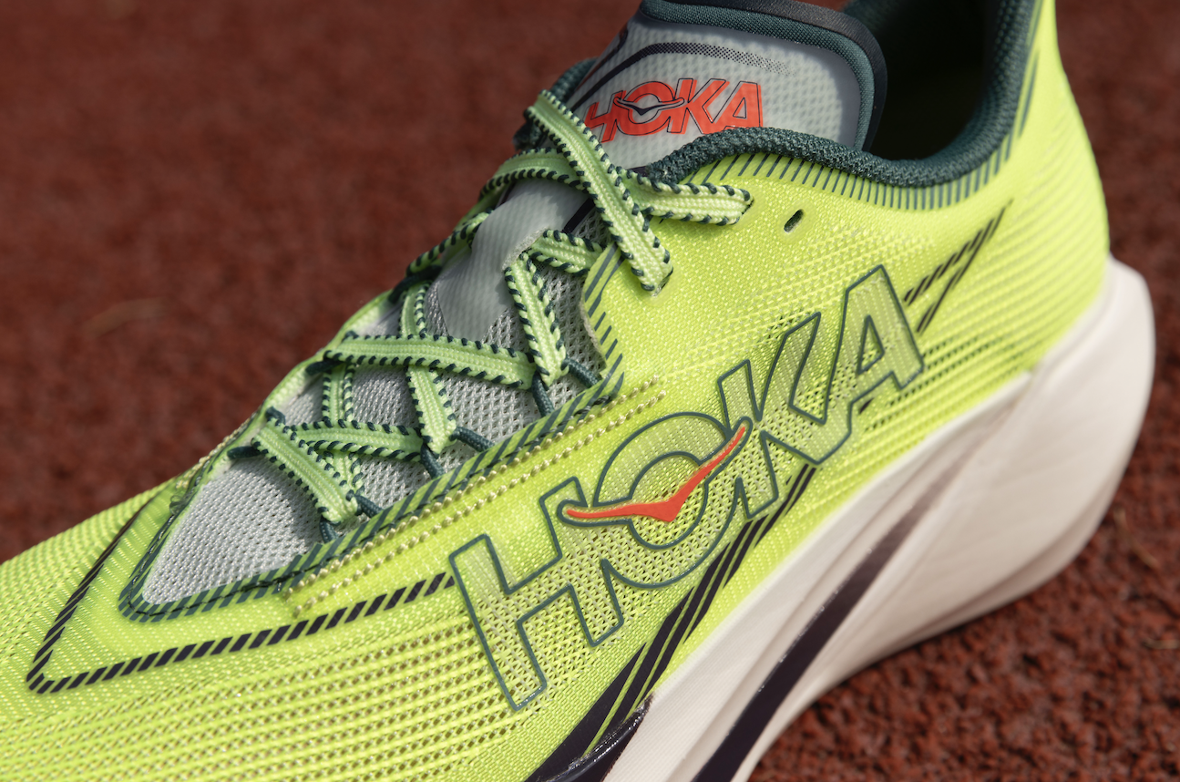 Cielo X1 3.0 男裝(US10)僅重 213g,女裝(US8)更輕至 175g,成為 Hoka 史上最輕的馬拉松競速鞋。鞋面採用 Leno Weave 透氣編織科技,在極致減重的同時提供穩定貼合效果;Dynamic Vamp 動態鞋面與不對稱鞋帶設計順應腳掌自然律動,有效減輕腳背壓力。壓縮成型聚氨酯外底在兼顧輕量的同時提供可靠抓地力與耐用度,為中長距離賽事提供穩定保護。中底結構與前代產品類似,底部採用略硬的泡棉材料,碳板上方則使用較軟的泡棉材料。這種設計使碳板與足部保持一定距離,從而帶來柔軟、回彈且緩震良好的穿著體驗。只有在嘗試彎曲鞋子時(實際上無法彎曲),你才會明顯感覺到碳板的存在。