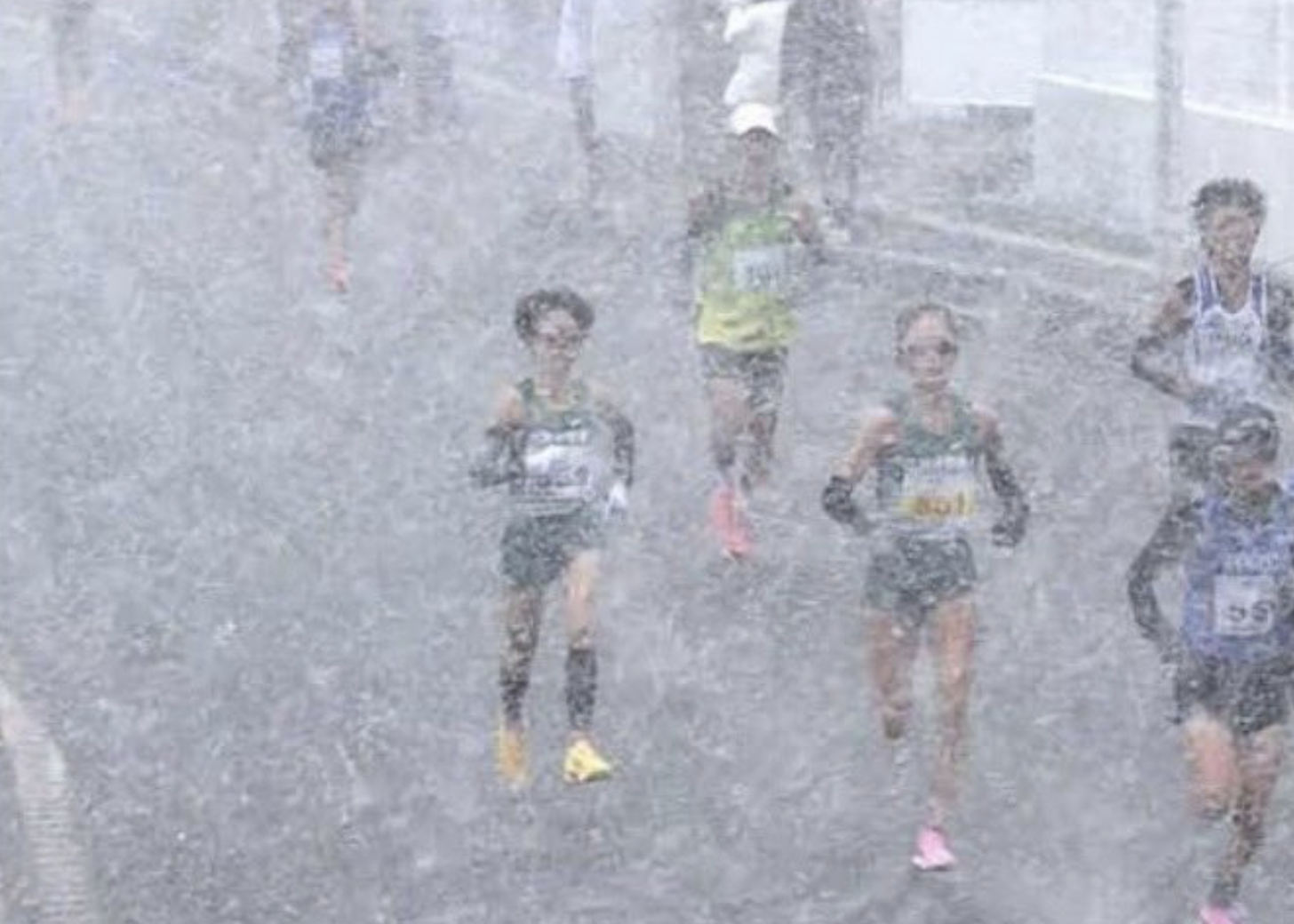 比賽當日山口市氣溫偏低,起跑時伴隨風雪,賽道濕滑。圖|讀賣新聞