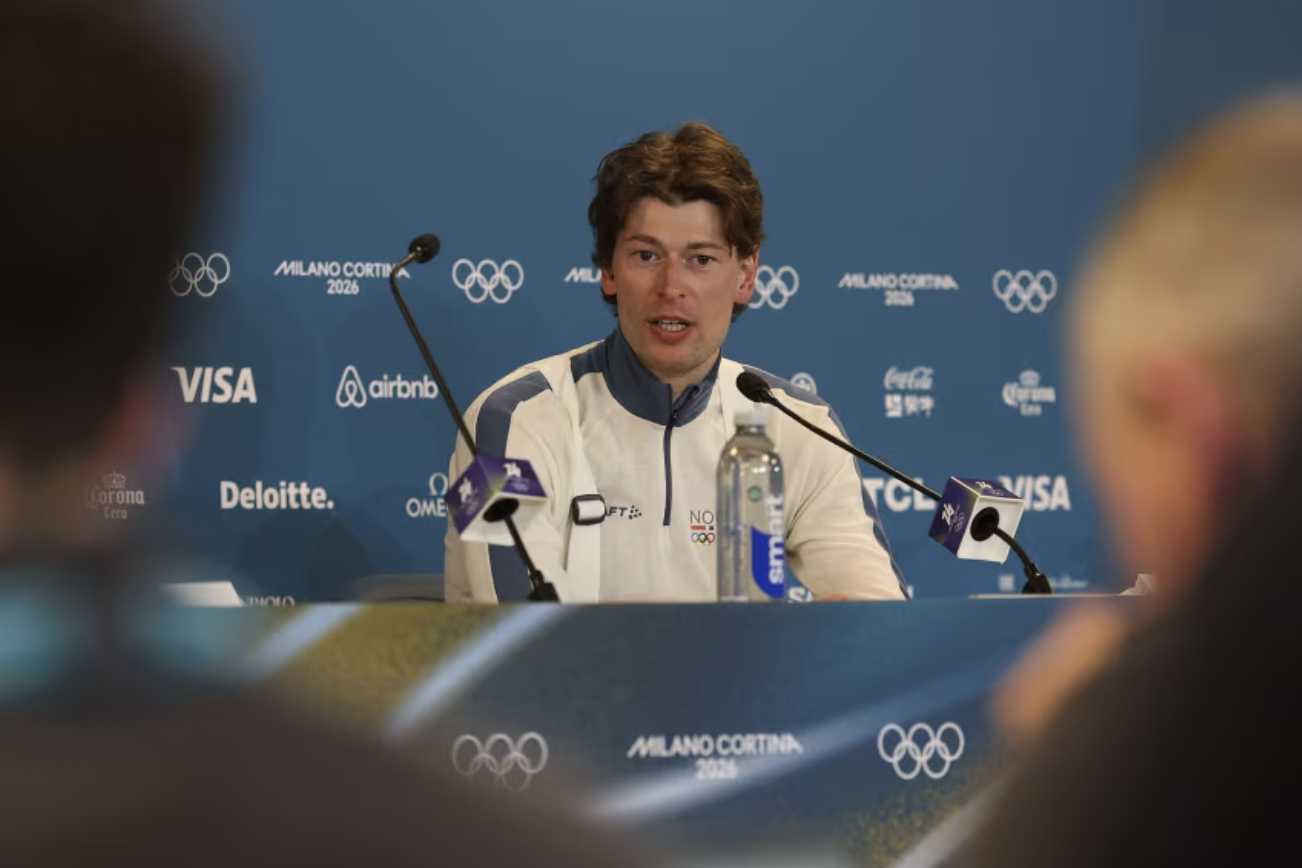Laegreid 因出軌訪問「騎劫」了賽事向隊友金牌得主 Johan-Olav Botn(左)道歉(圖:AP)
