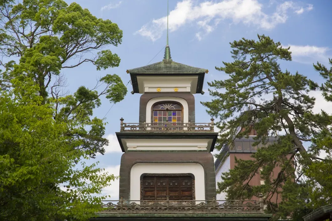 祭祀前田利家的尾山神社在1873年遷移此地,正面的神門是融合和洋中風格的三層樓門,由於是1875年建成的古蹟,現在被指定為國家的重要文化財。
