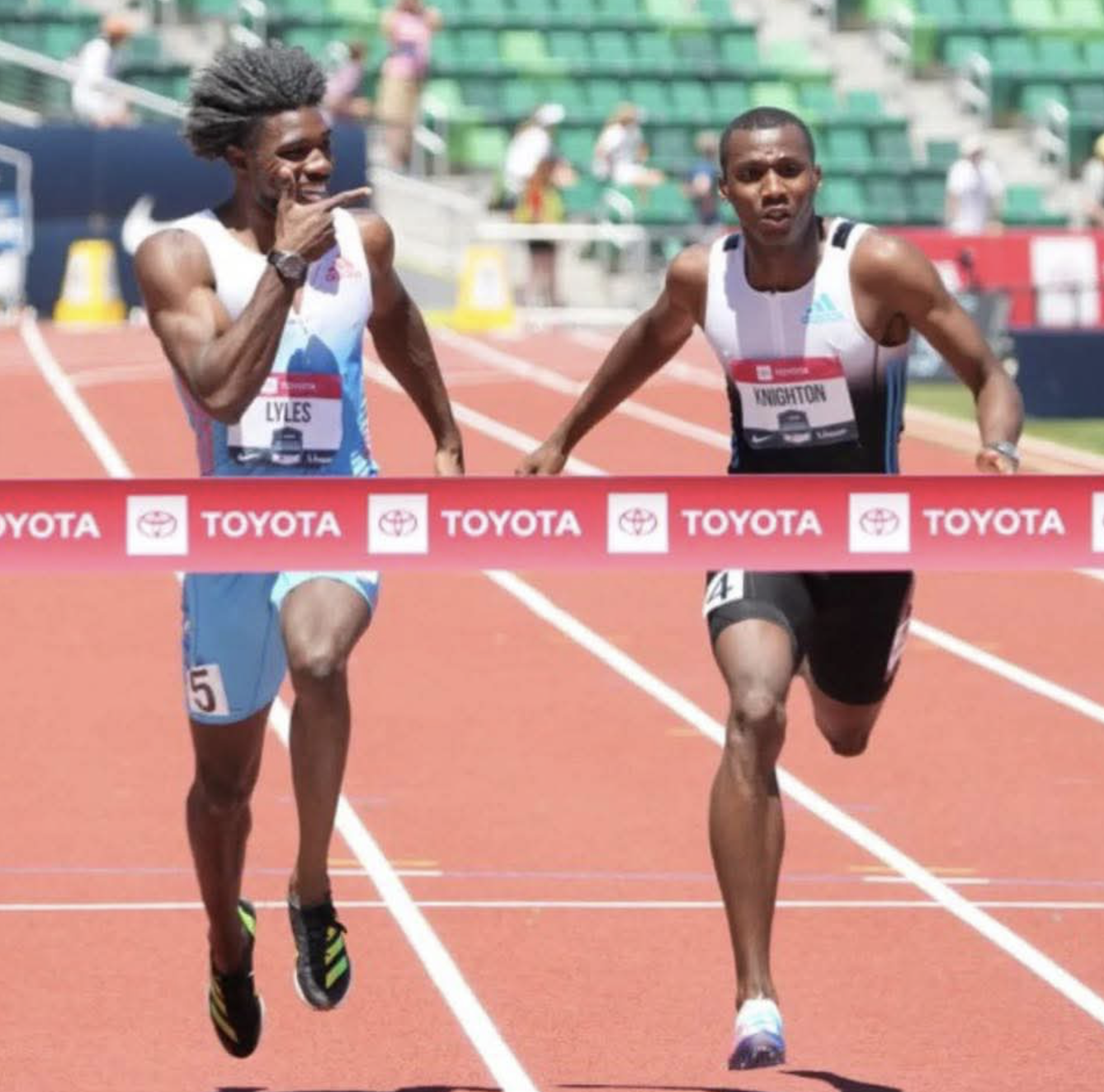 2022 年 Noah Lyles 在賽事中擊敗對手後也做了同樣的手勢但並未受罰(網上圖片)
