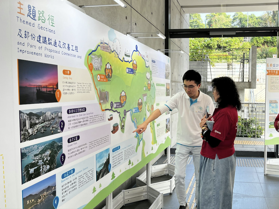 甯漢豪表示,局方留意到部分行山徑沿途有合適大石,可用作修建手作步道,例如南灣泳灘至舂磡角配水庫一條長約一公里的行山徑,是全港首條在郊野公園範圍外採用手作步道方式建造的行山徑。環島長廊亦會沿途安裝特別設計的指示牌,採用擴增實景技術(AR),豐富遊人體驗。今年起,土拓署會陸續駁通東岸板道(東段)、南灣泳灘至舂磡角配水庫和鶴咀道至石澳泳灘的行山徑等,以及優化現有海濱長廊和步行徑,落實「香港無處不旅遊」理念。