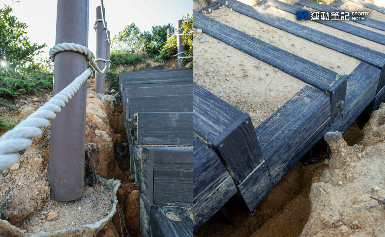政府耗資 1700 萬,以回收膠及半廢木環保塑木預製梯級組件興建的環嶼遠足徑,由於概念涉及塑木「植根」野外,膠粒留在泥土,長遠會影響生態環境,因此於 2023 年落成時,已引起不少環保團體及山徑關注團體關注;最近有關注團體更發現,該路段一帶梯級邊緣出現了明顯縫隙,部分支撐梯級的金屬支架已然外露,擔心鬆散的土壤很容易成為雨水侵蝕的缺口、另外部分固定欄杆的水泥基座亦同樣外露,甚至有些塑木框架的組件更已完全鬆脫;考慮到設施完工至今未夠兩年已出現失修問題,情況令人擔心。