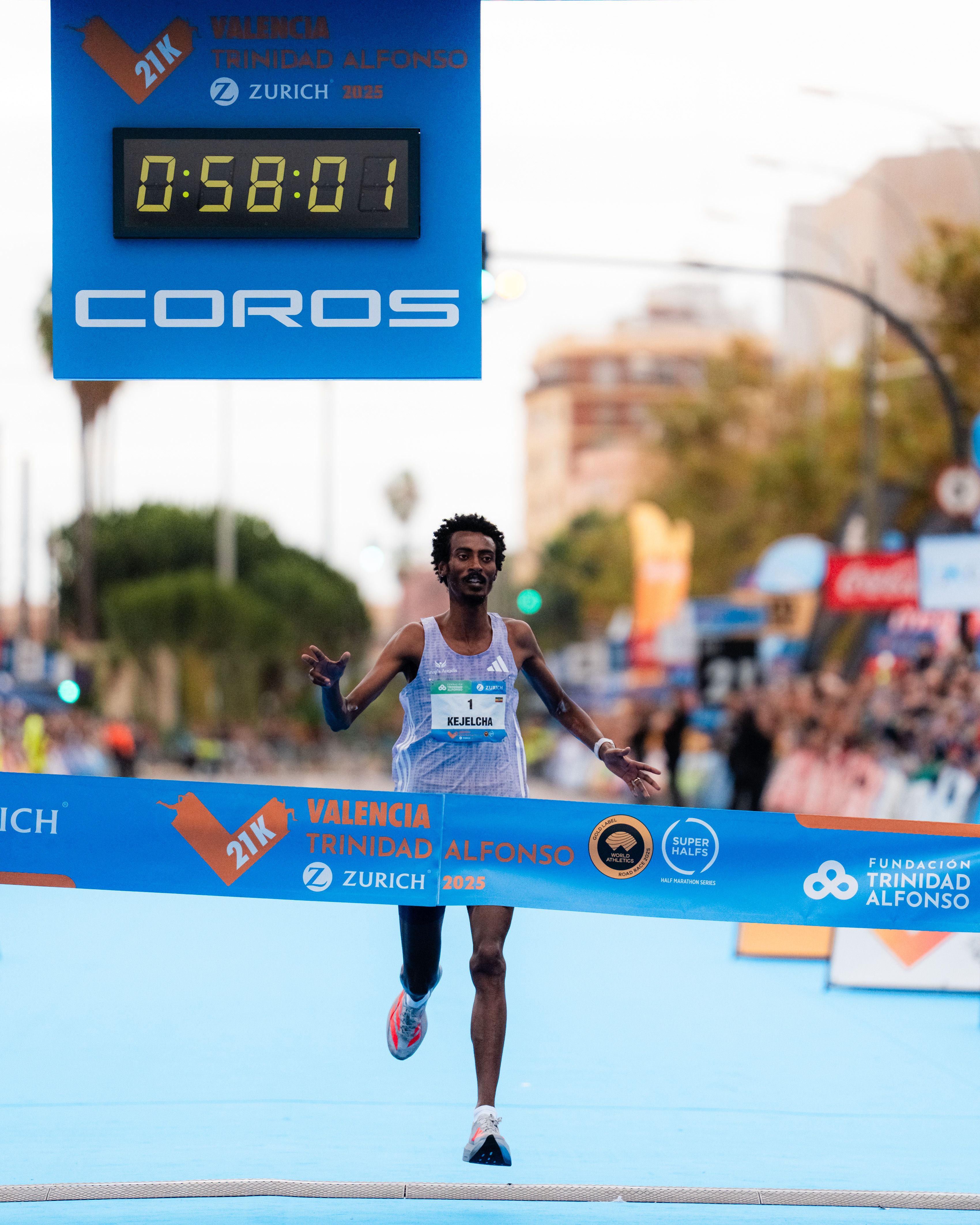 Yomif Kejelcha 以 58:01 奪下冠軍。圖|Via Corredor