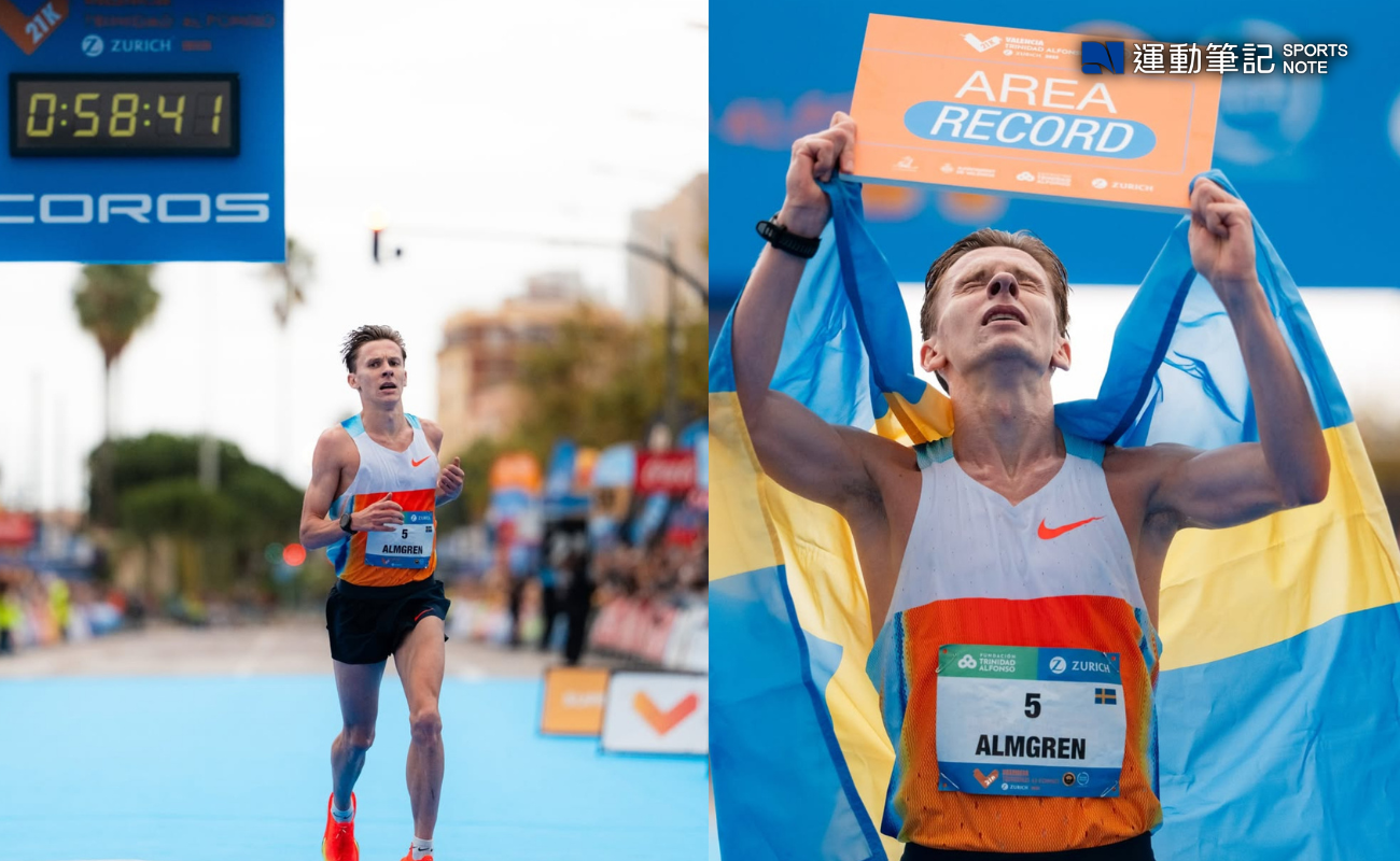2025 年可以說是 Andreas Almgren 的「紀錄年」,加上瓦倫西亞半程馬拉松(58:41),這已經是他今年度第三次寫下新的歐洲紀錄,其中包括今年一月同樣在瓦倫西亞中創下的 10 公里路跑歐洲紀錄(26:53)、瑞典斯德哥爾摩鑽石聯賽 5000 公尺(26:53),確立了他在不同距離上的全能身手!