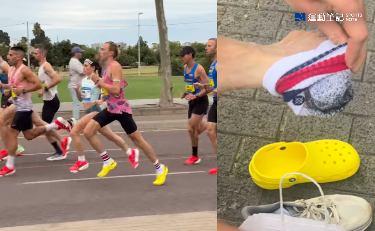 早在今年五月份的西班牙巴塞隆納 El Corte Inglés 10 公里比賽中,他就曾穿著亮眼的黃色洞洞鞋出戰,在所有人都認為只有碳板鞋才能跑出個人最佳時,他依舊繳出了 31 分 18 秒的成績,獲得了總排名第 10 名,證明「腳力」才是關鍵。