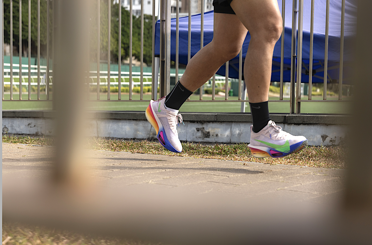 筆者試穿 Alphafly 3 分別進行了一次配速約 6 分 30 秒的 20 公里長課訓練,以及 8 x1000 米間歇跑,配速約為 3 分 50 秒至 3 分 58 秒,發現鞋子前足的雙重 Nike Air Zoom 氣墊有效吸收道路衝擊,達成靈敏反應的緩震效果,並將能量回饋給跑者,為他們的下一步做好準備;此外,更寬的全長 Flyplate 碳纖維板也提供穩定推進力。
