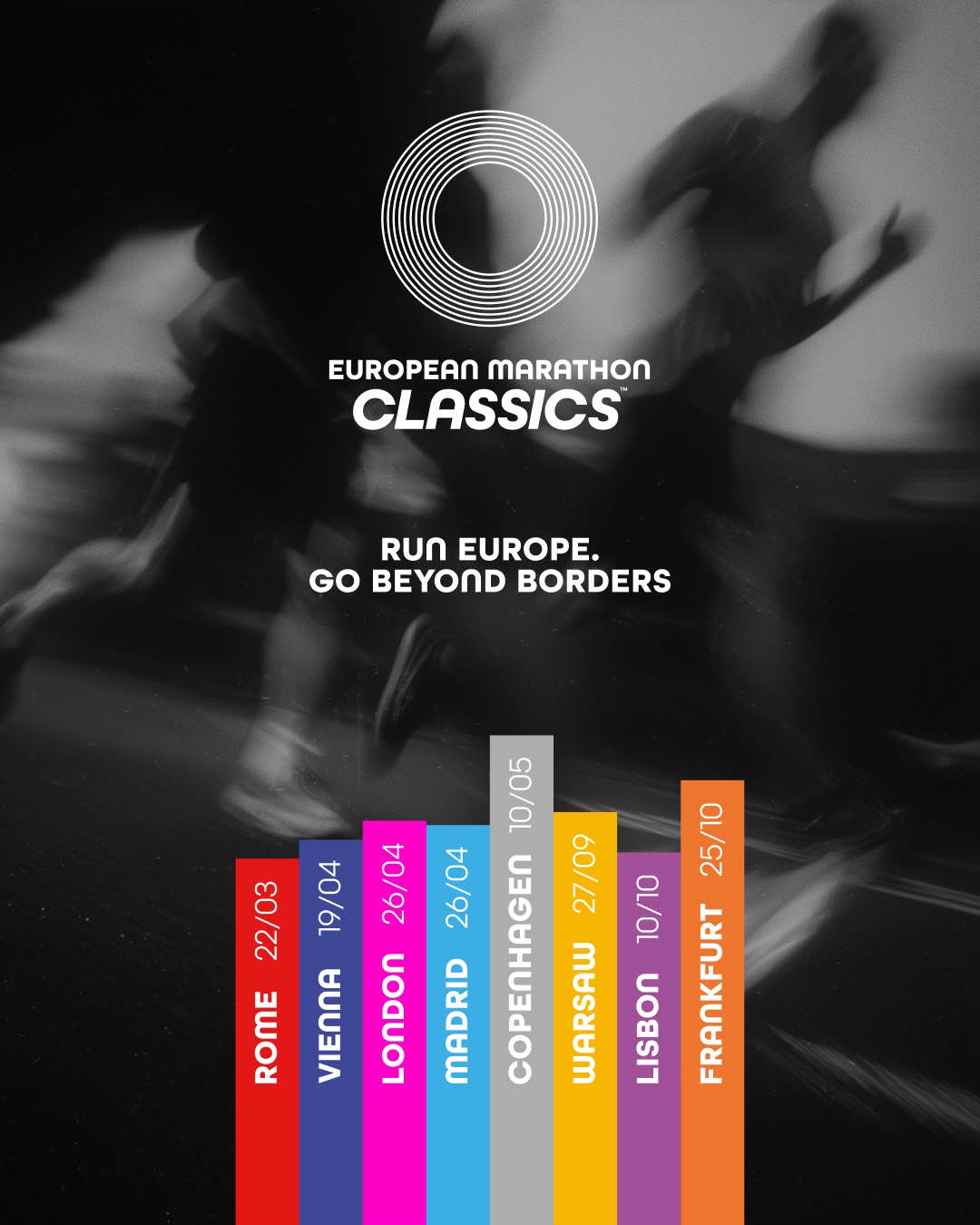 | 歐洲馬拉松經典系列賽 8 大馬拉松包括 羅馬馬拉松 22/3/2026 維也納 19/4/2026 倫敦 26/4/2026 馬德里 26/4/2026 哥本哈根 10/5/2026 華沙 27/9/2026 里斯本 10/10/2026 法蘭克福 25/10/2026 |