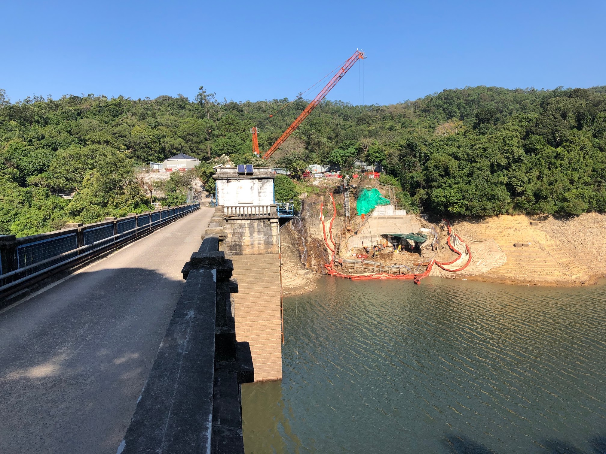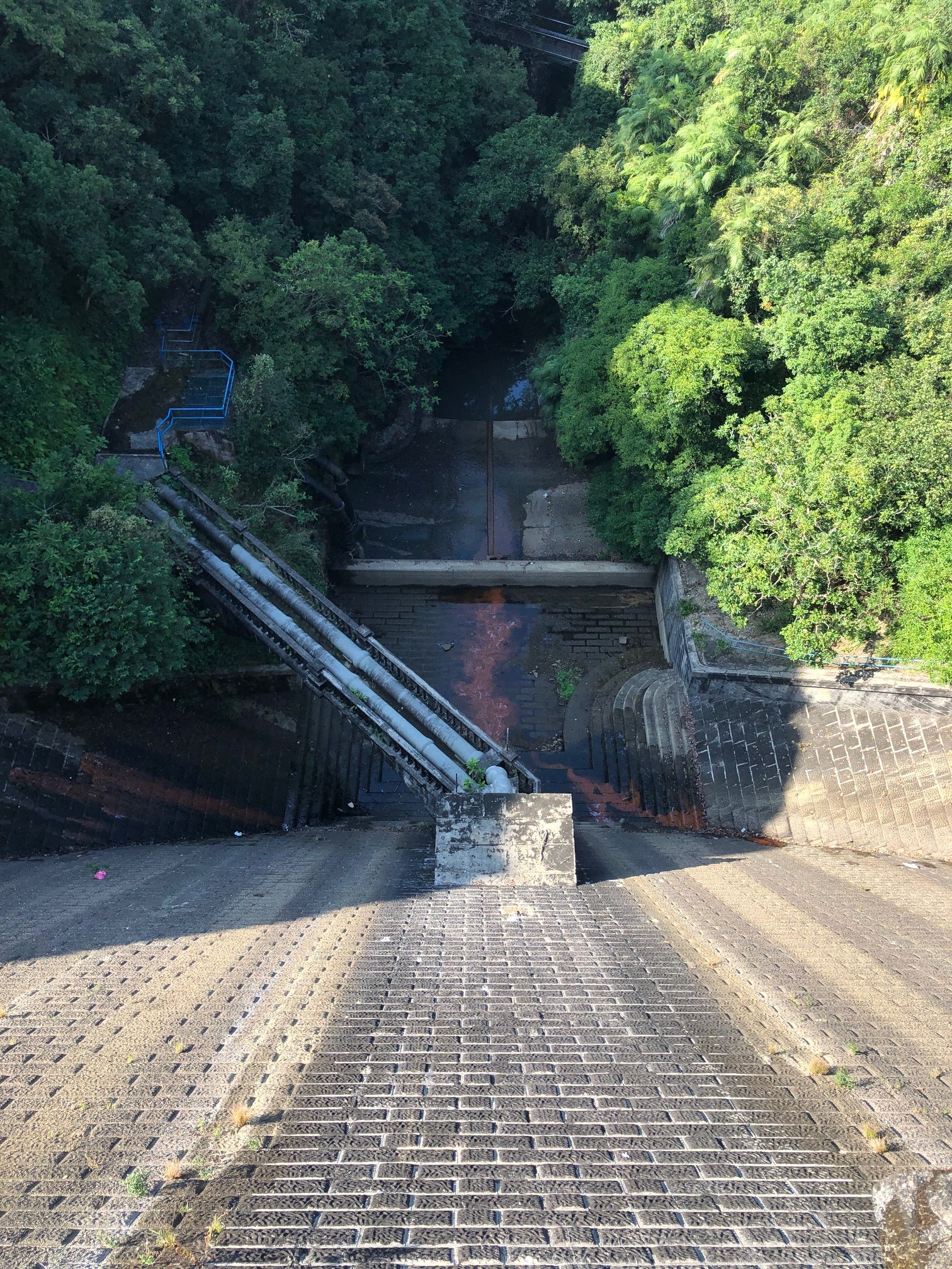 來到環新界最後一日,心情變得舒暢,雖然昨晚又是搞到深夜,不過也能即時入睡,一早準時起床,有得玩就可以自然醒。經過兩輪轉車再轉車,終於重回大埔道,兩天前到過的終點。沿著長源路斜路落,很快便到達九龍副水塘堤壩,這裡正進行難得一見的斜坡維修,下望就是由花崗岩搭建而成的堤壩。