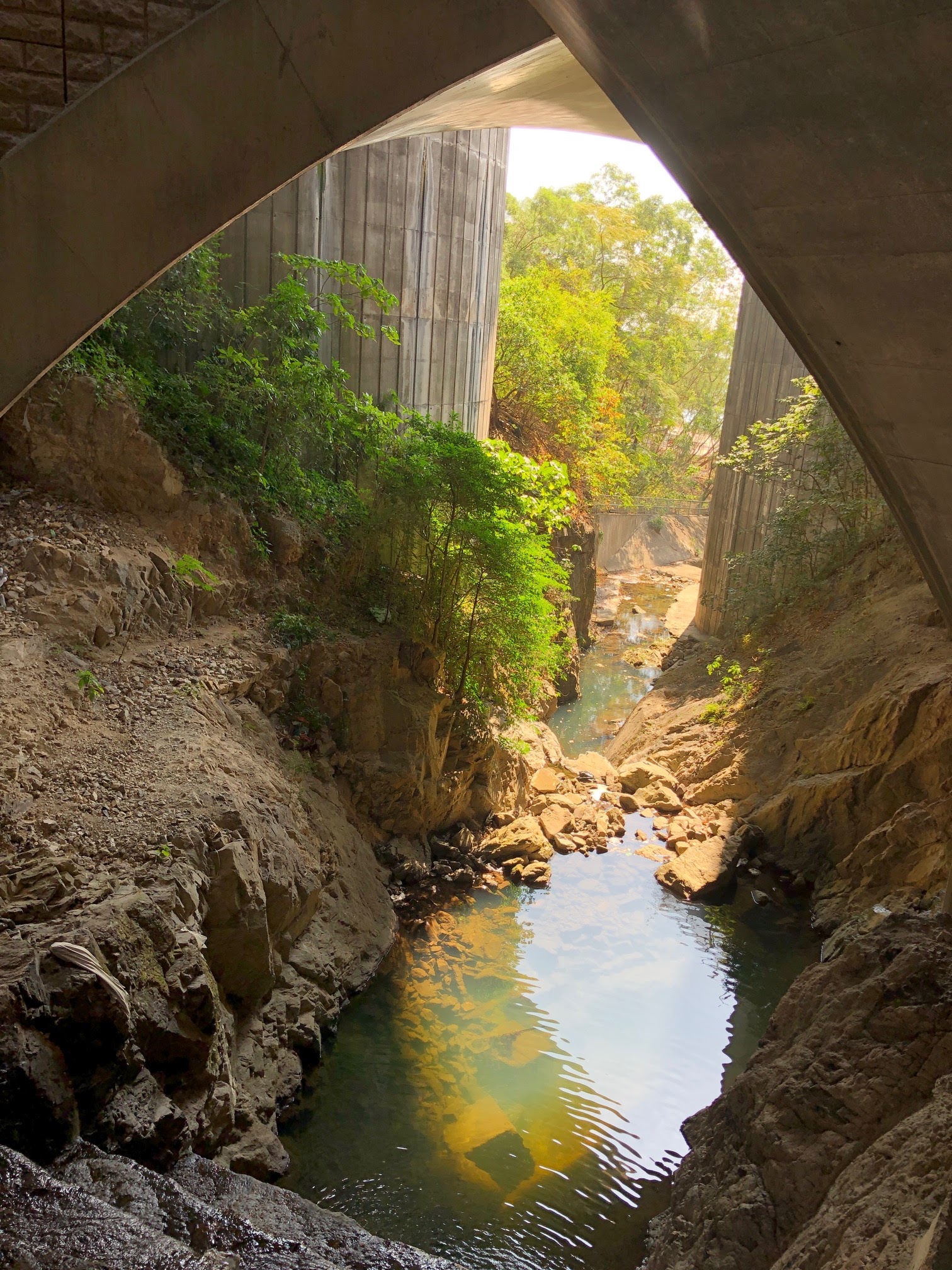 來到最後一段路,亦是第一次正正式式跑一次由荃灣至屯門的整條青山公路;雖然是平日,還是有單車友練習,首先從宏偉的綠牆屋苑起步,穿過前衛的橙色隔音隧道、走越寧靜的幼沙泳灘、享受片刻的獨處時間,迷迷糊糊來到汀九橋墩下的山溪秘境,原來今次是上錯天橋,錯有錯著能夠有機會欣賞如詩美境,實在有賺了,不過千萬不要忘記在嘉頓面前打咭啊!